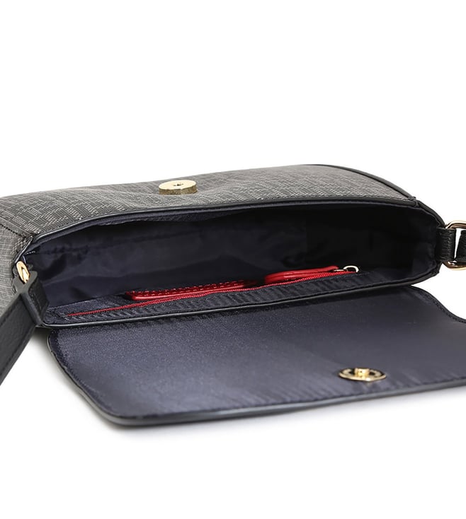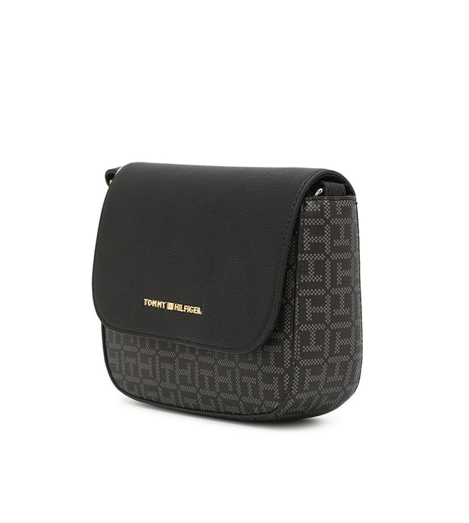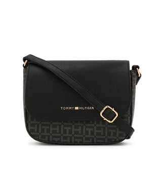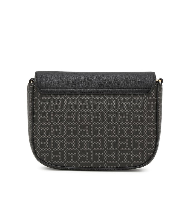 TOMMY HILFIGER Logo Printed Black Pvc Sling Bag