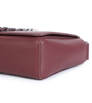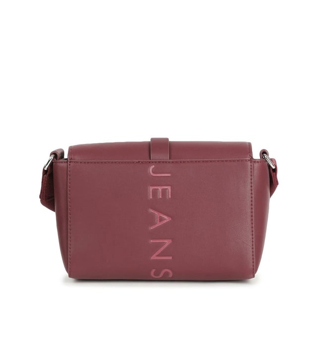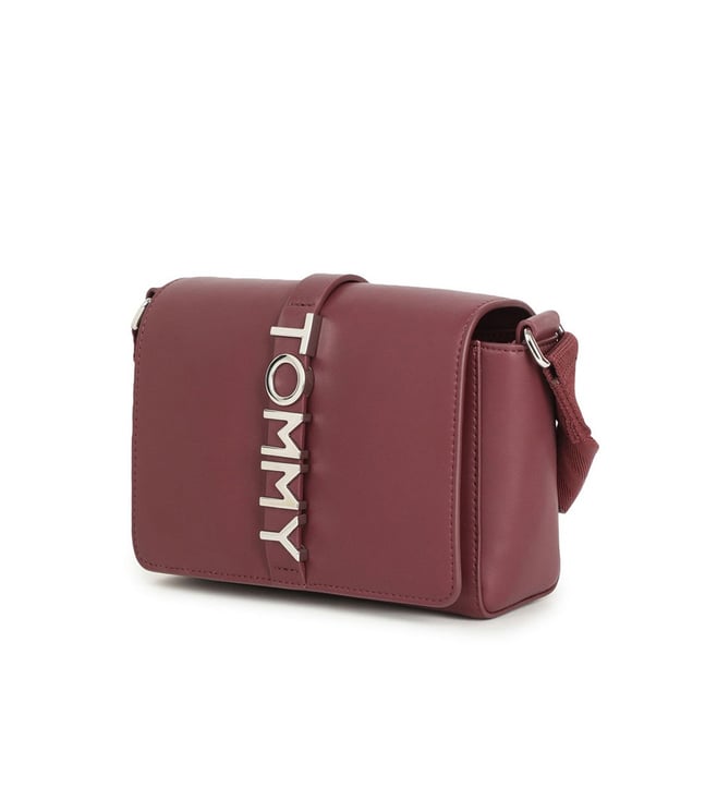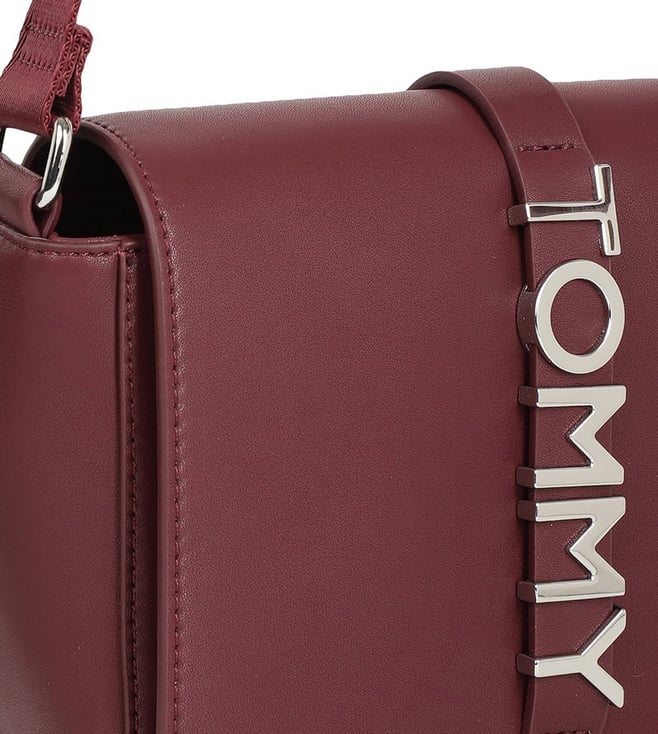 TOMMY HILFIGER Logo Printed Burgundy Pu Sling Bag