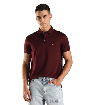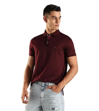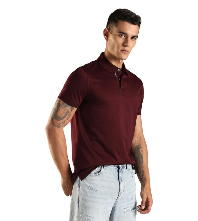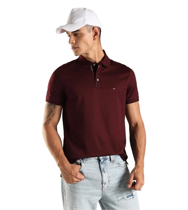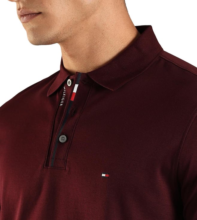 TOMMY HILFIGER Maroon Cotton Regular Fit Polo T-Shirt