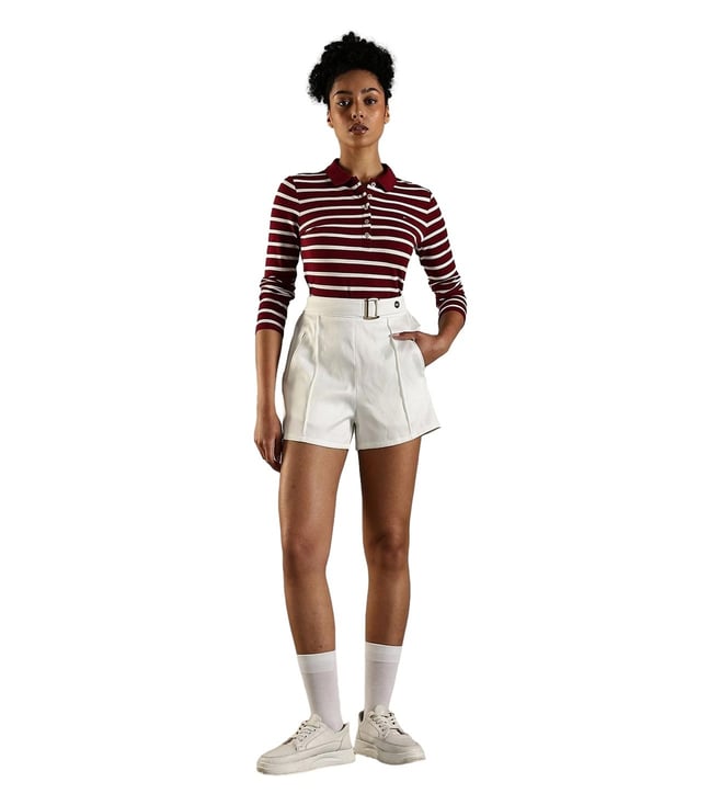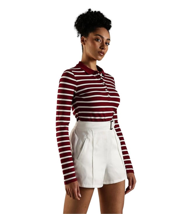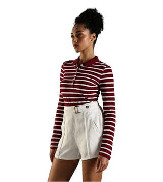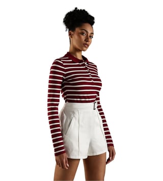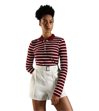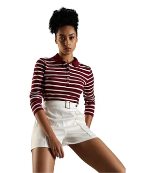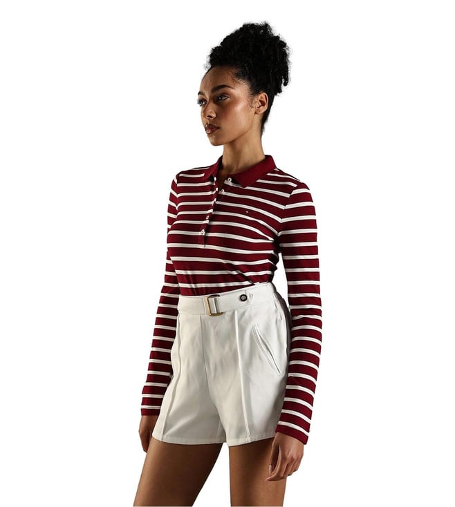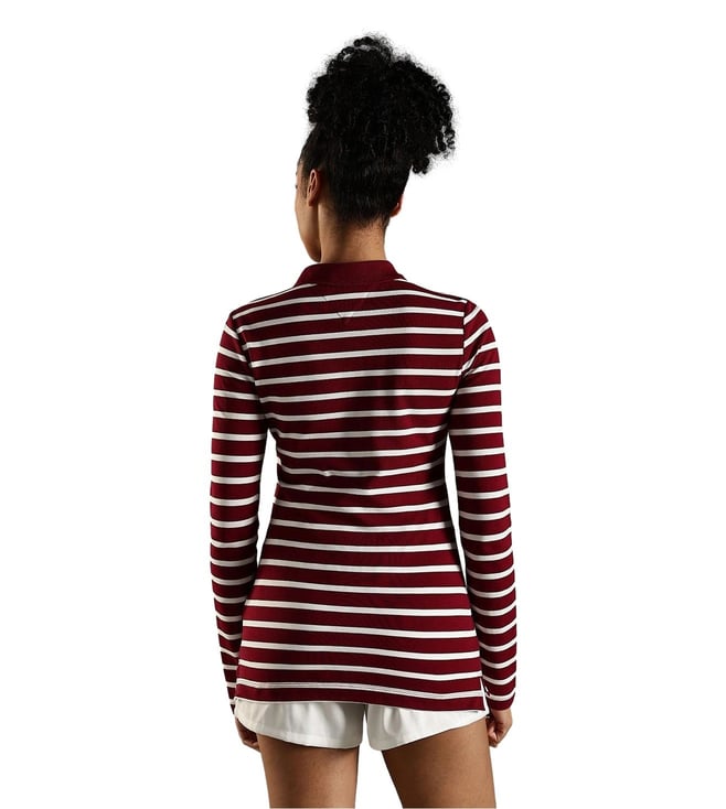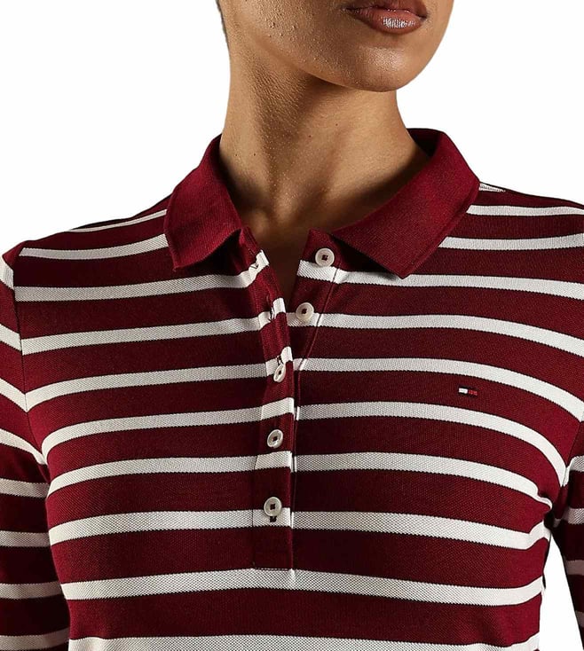 TOMMY HILFIGER Maroon Cotton Slim Fit Striped Polo T-Shirt