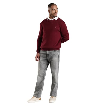 Elevate your wardrobe with the TOMMY HILFIGER Maroon Regular Fit Sweater. Crafted from high-quality materials, this sweater offers both style and comfort. The classic maroon color and regular fit make it a versatile piece that can be dressed up or down for any occasion. Stay warm and fashionable in this timeless sweater that exudes sophistication and quality. Upgrade your look with this must-have staple from TOMMY HILFIGER.