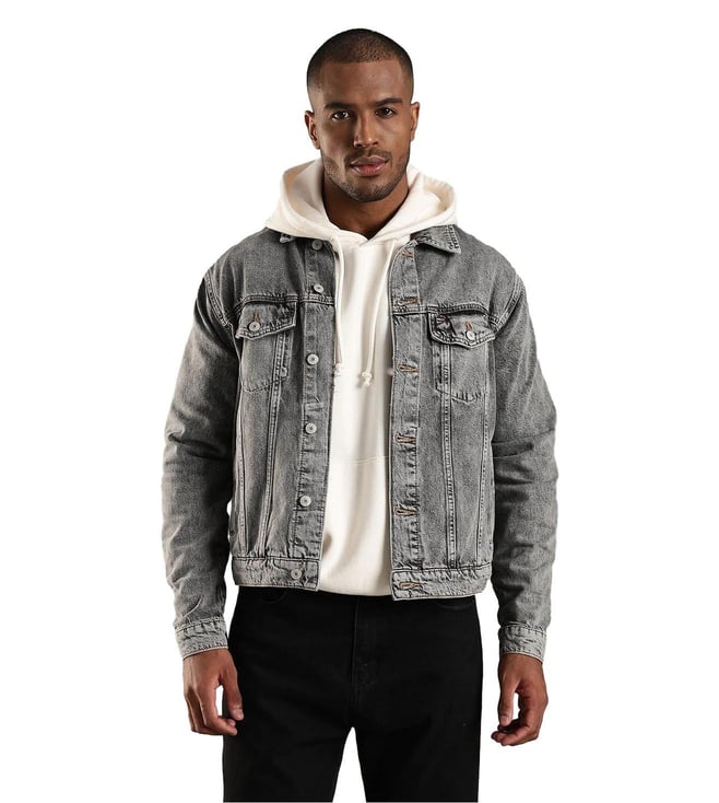 Charcoal Grey Cotton Regular Fit Denim Jacket