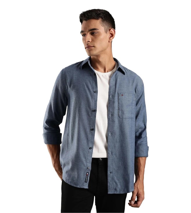 Blue Cotton Regular Fit Self Pattern Shirt