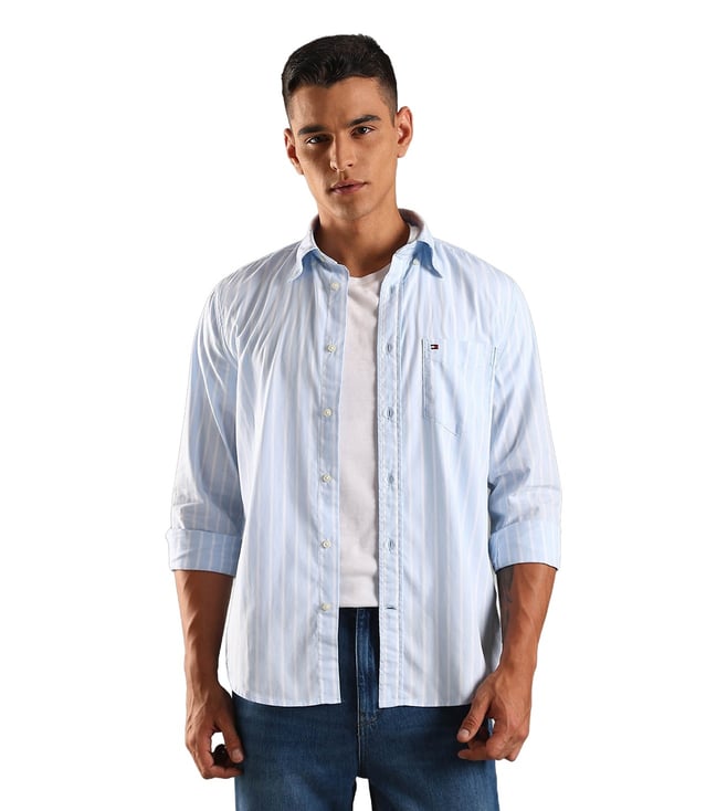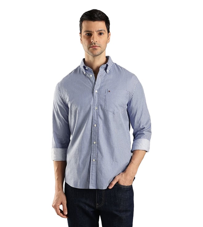 Blue Cotton Regular Fit Striped Shirt