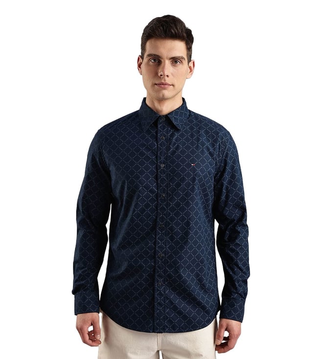 Blue Printed Regular Fit Cotton Shirt