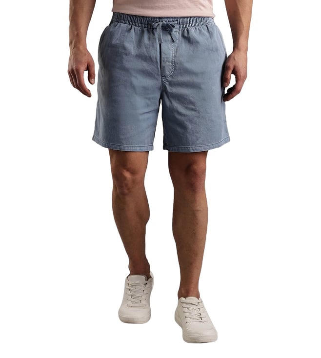 Light Blue Regular Fit Mid rise Shorts