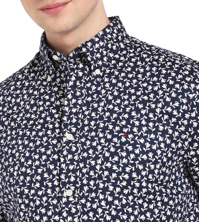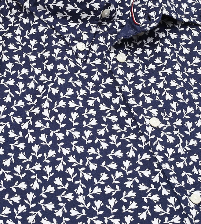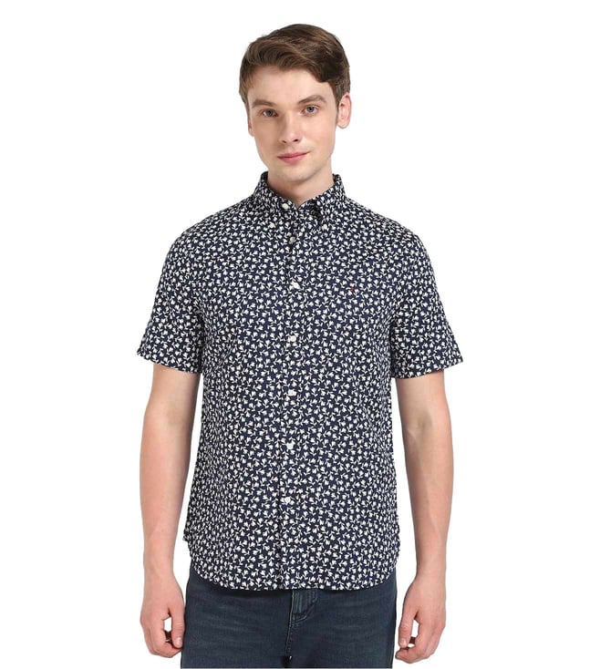TOMMY HILFIGER Men's Blue Print Regular Fit Shirt