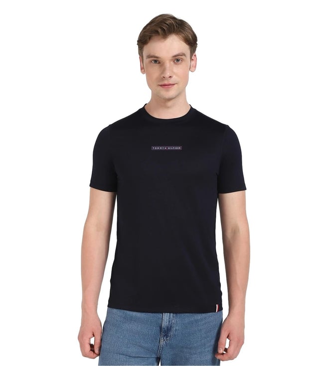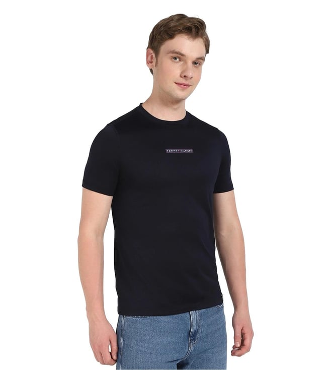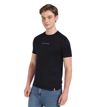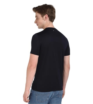 TOMMY HILFIGER Men's Blue Solid Regular Fit T-Shirt