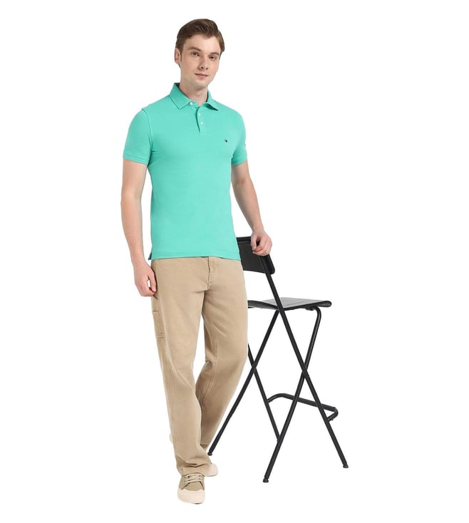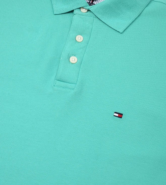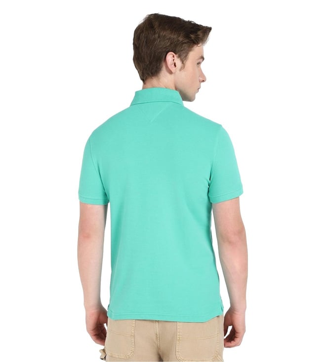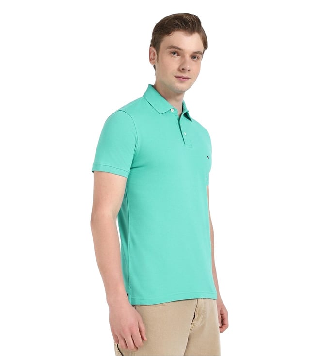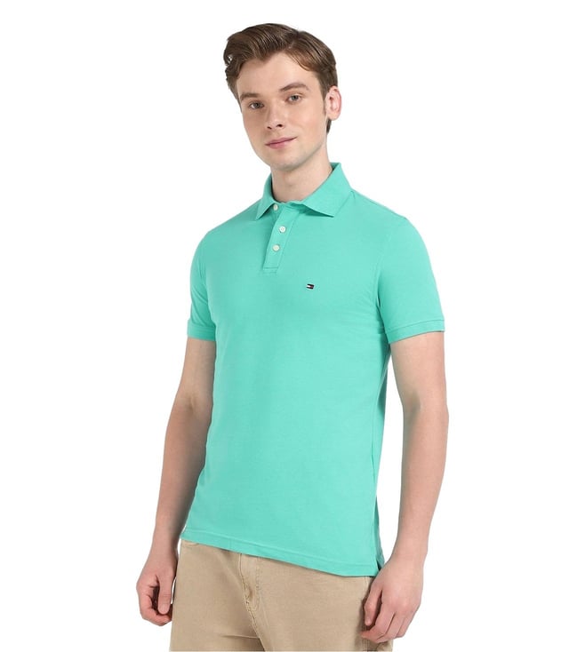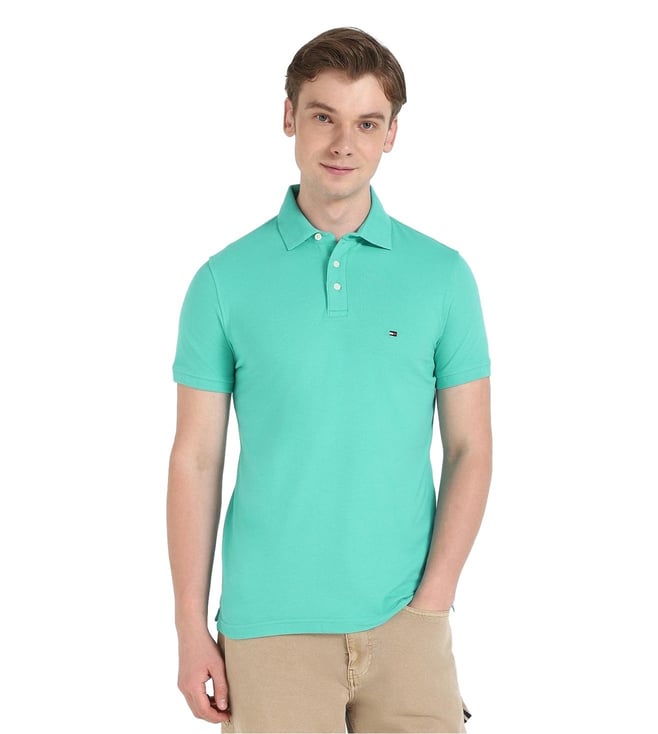 TOMMY HILFIGER Men's Blue Solid Slim Fit Polo T-Shirt