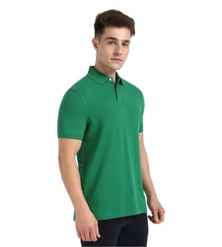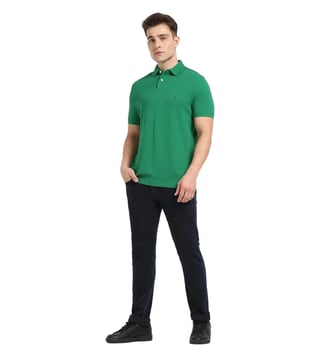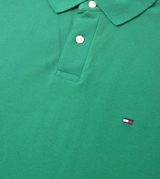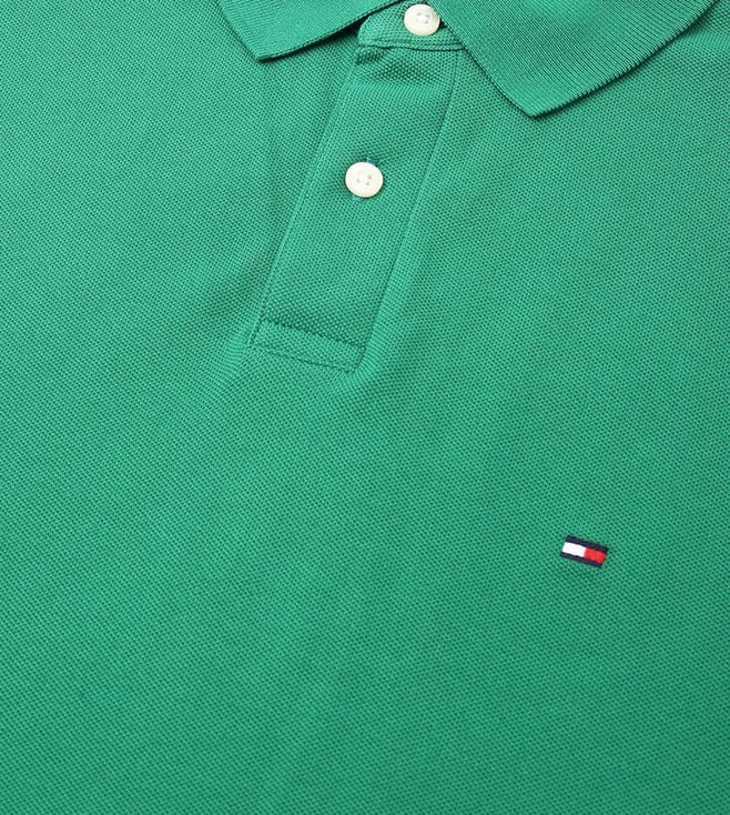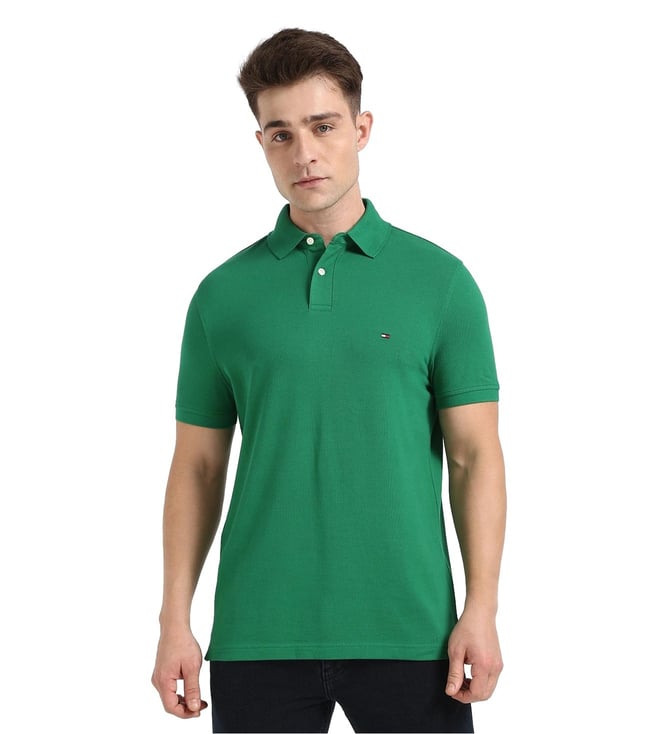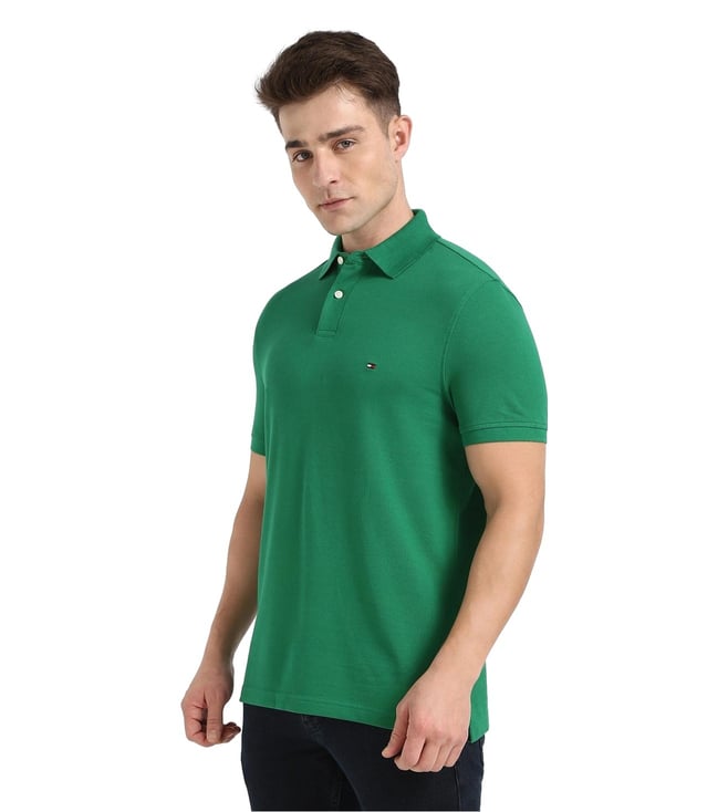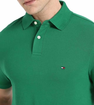 TOMMY HILFIGER Men's Green Solid Regular Fit Polo T-Shirt