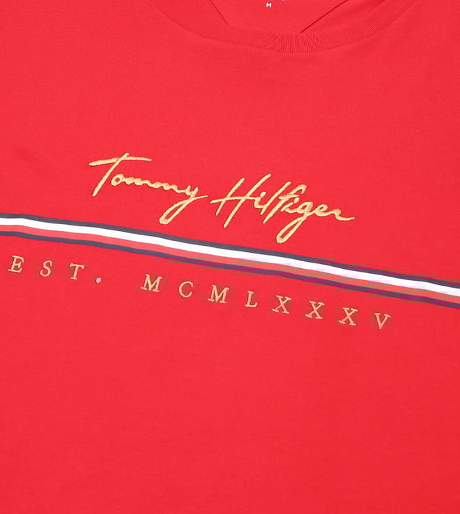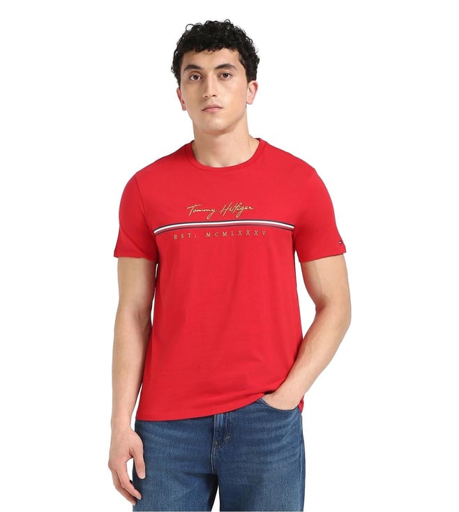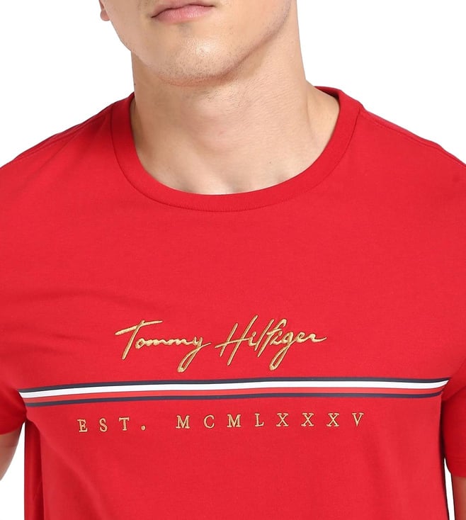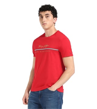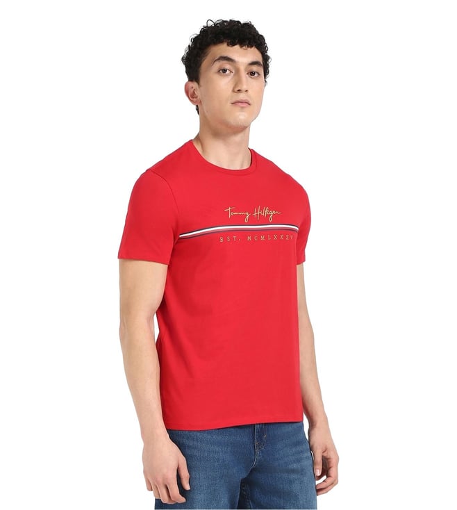 TOMMY HILFIGER Men's Red Graphic Regular Fit T-Shirt