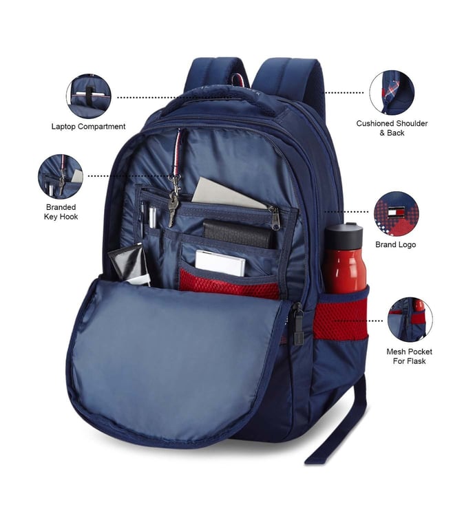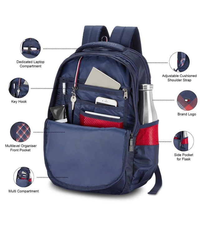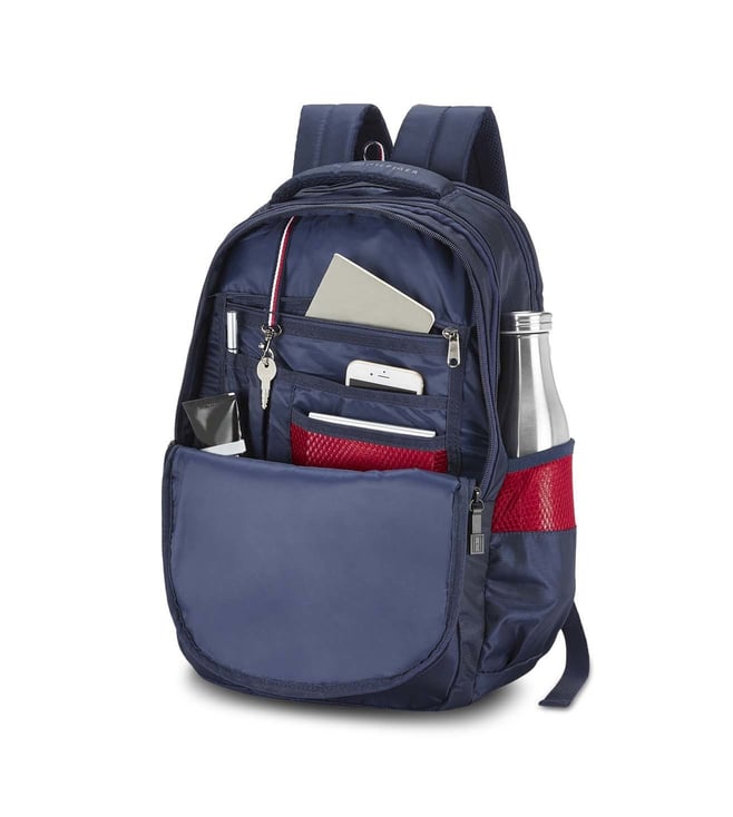 Garner the attention of many by carrying this unisex laptop backpack from the Alps collection by Tommy Hilfiger. Manufactured using high-quality polyester, this navy backpack is long-lasting. This backpack features adjustable straps and a zip closure that add to its utility. It vaunts a printed pattern that will enhance your look in a stylish way. To accommodate your 15-inch laptop and other stuff, it comes with 3 compartments.
