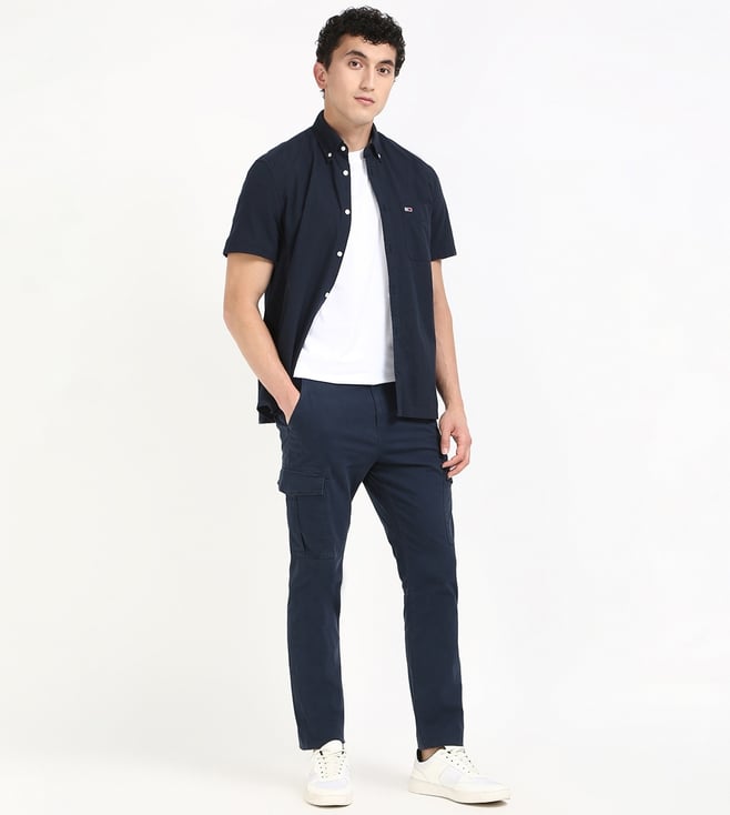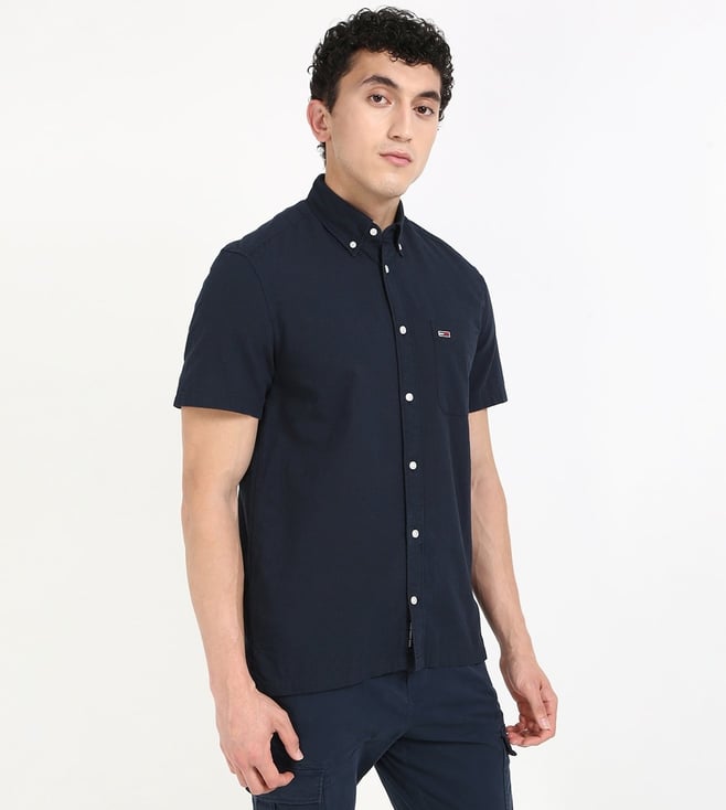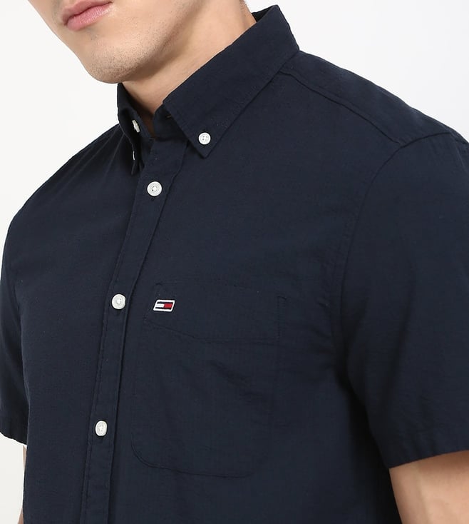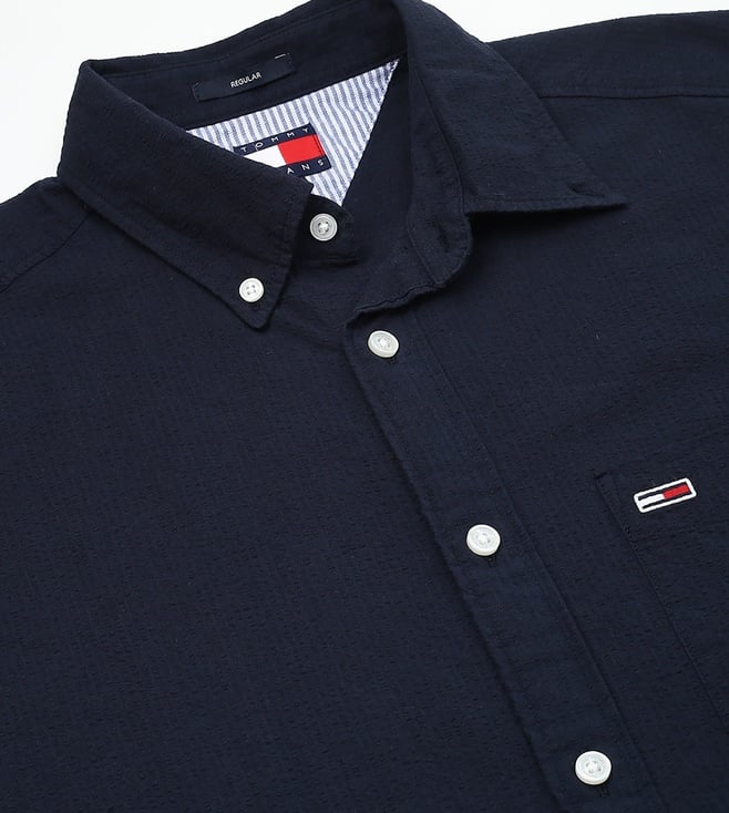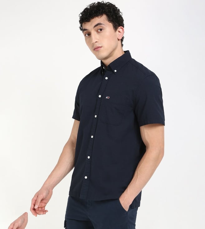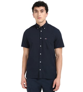 TOMMY HILFIGER Navy Blue Cotton Regular fit Solid Shirt