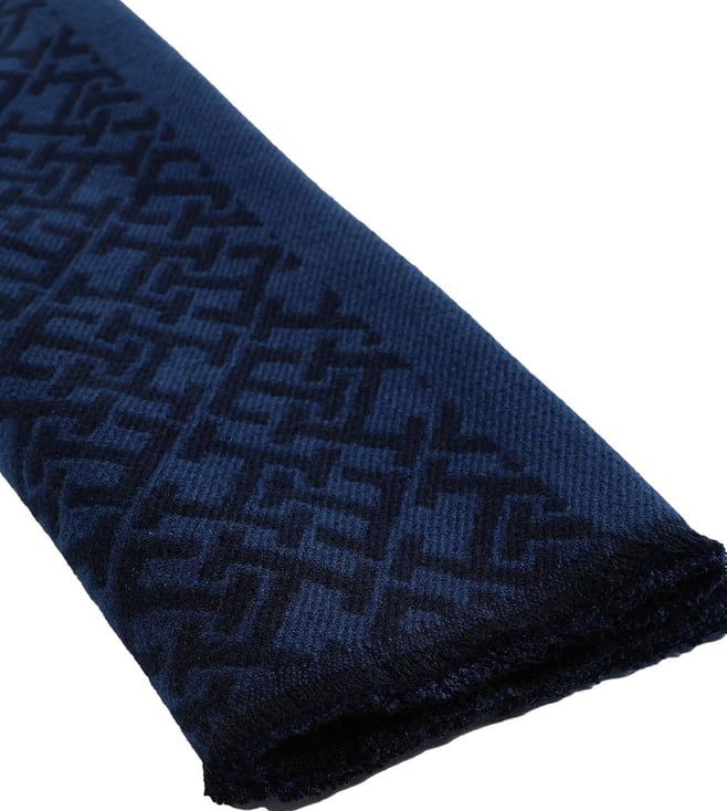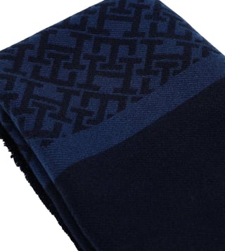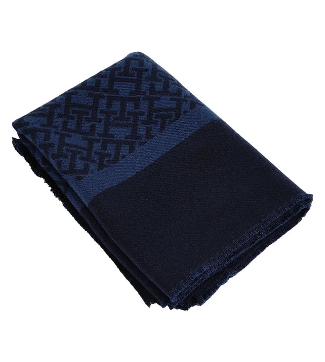 TOMMY HILFIGER Navy Cotton Logo Print Scarf