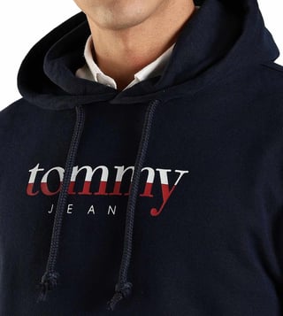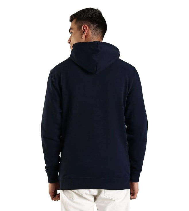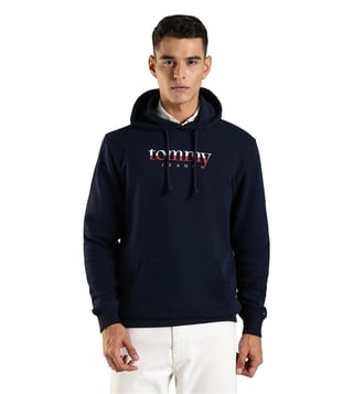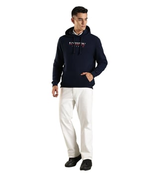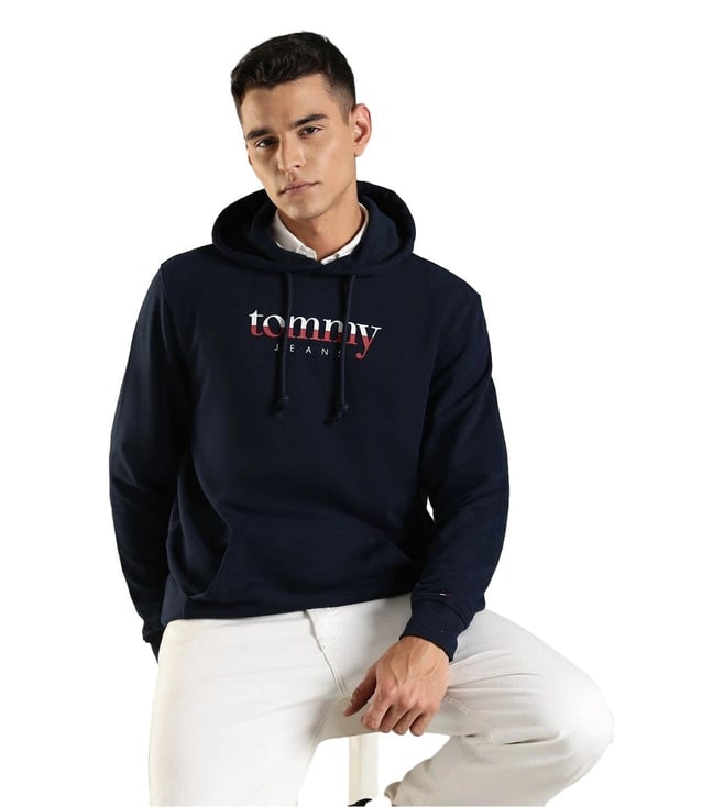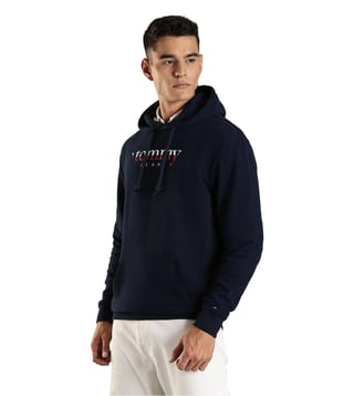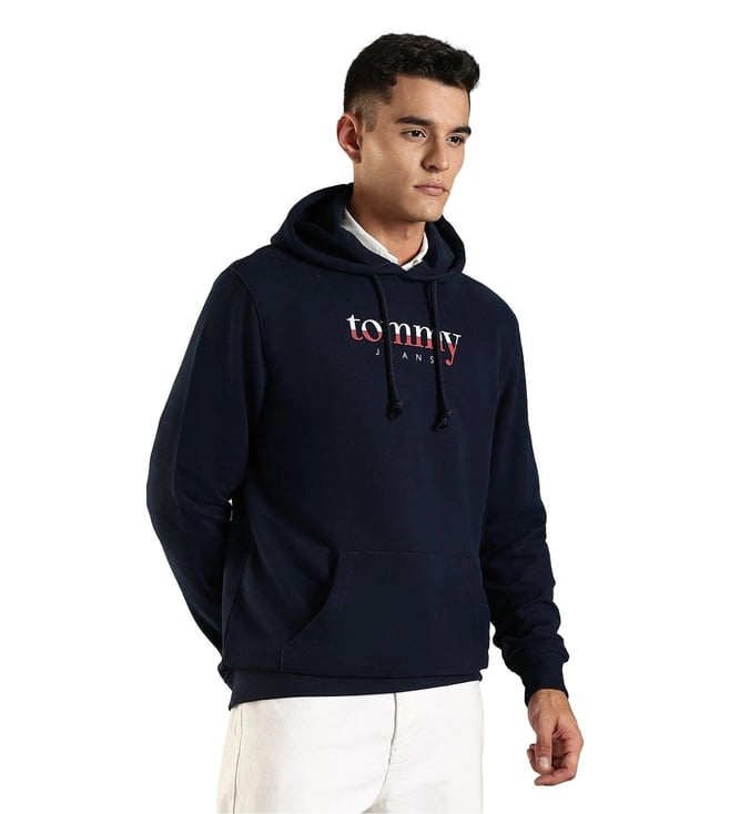 TOMMY HILFIGER Navy Cotton Regular Fit Logo Printed Hooded Sweatshirt