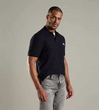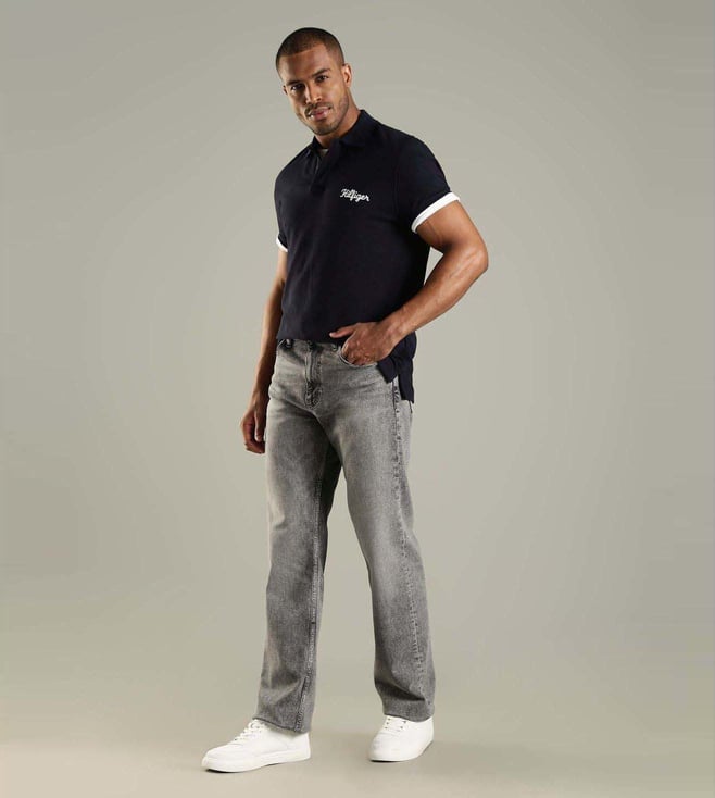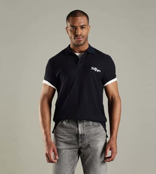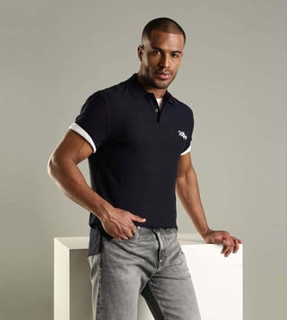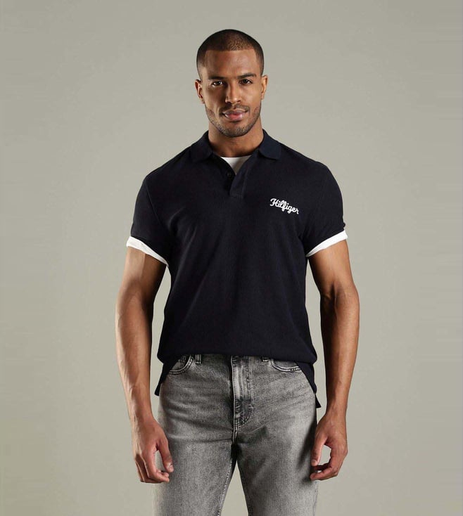 Slay the look by wearing this navy regular fit polo t-shirt from TOMMY HILFIGER. Tailored to sartorial perfection from premium quality fabric, it assures a soft and soothing touch against the skin. Exuding short sleeves, it is sure to fetch you compliments from all. It emanates a brand logo which makes it a unique choice.