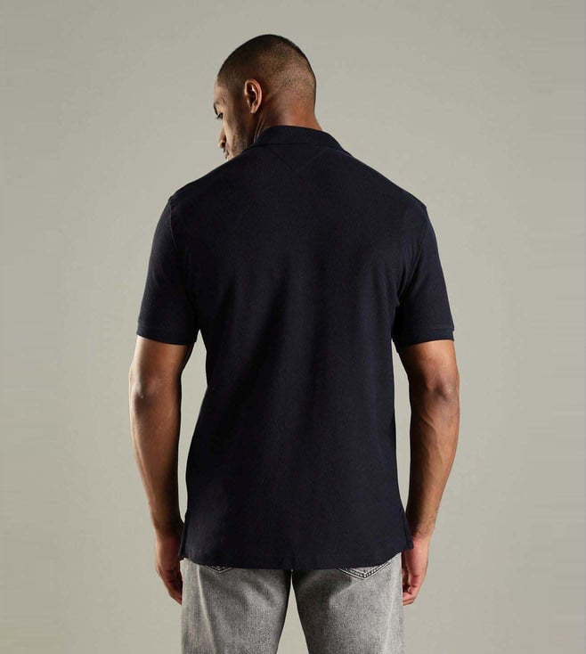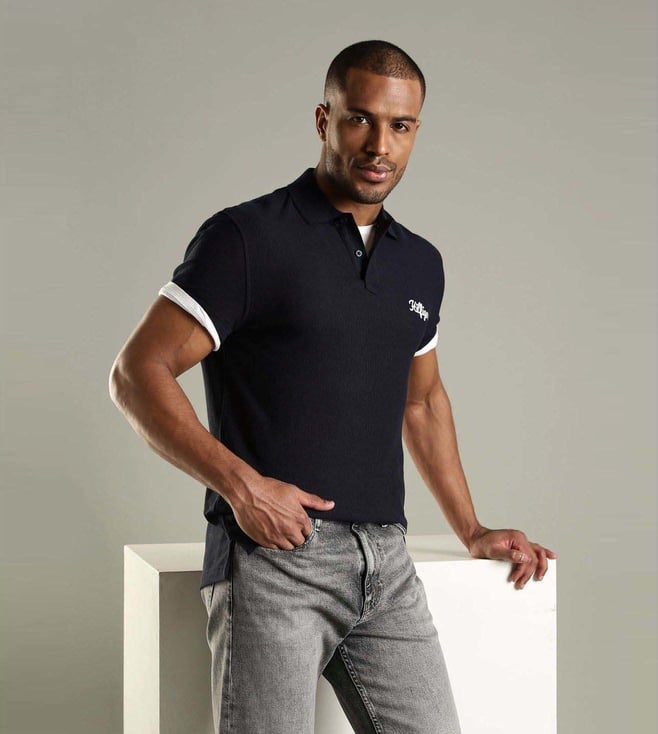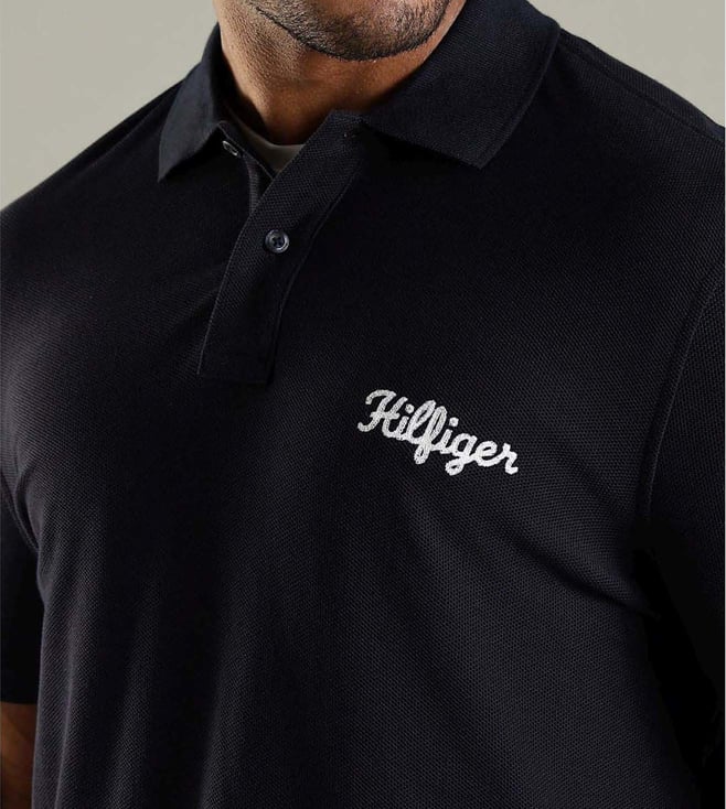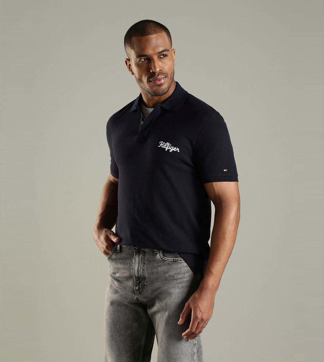 TOMMY HILFIGER Navy Cotton Regular Fit Logo Printed Polo T-Shirt