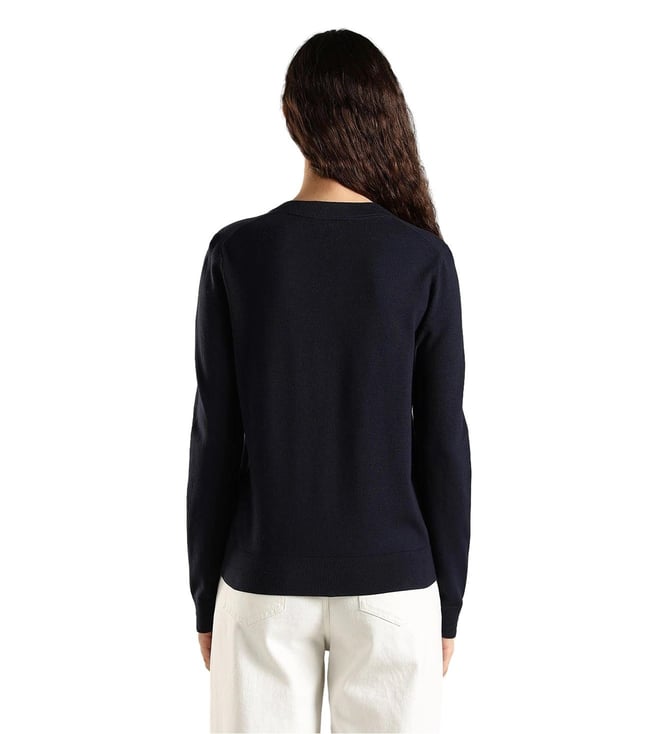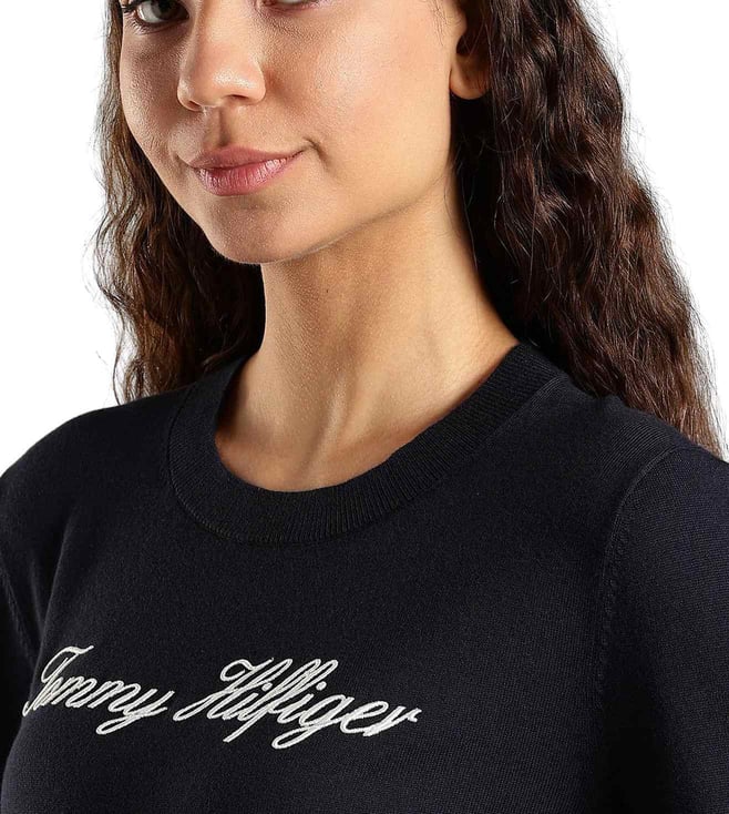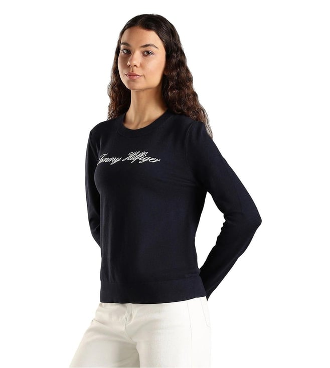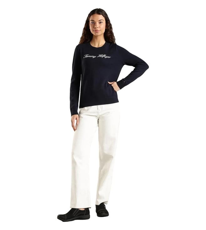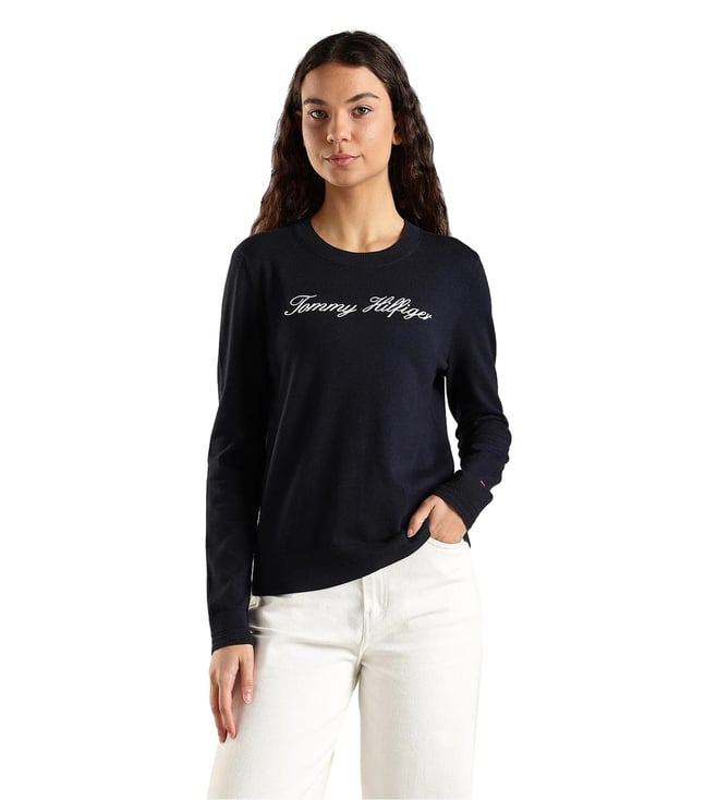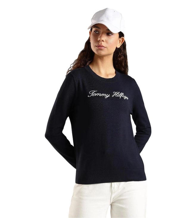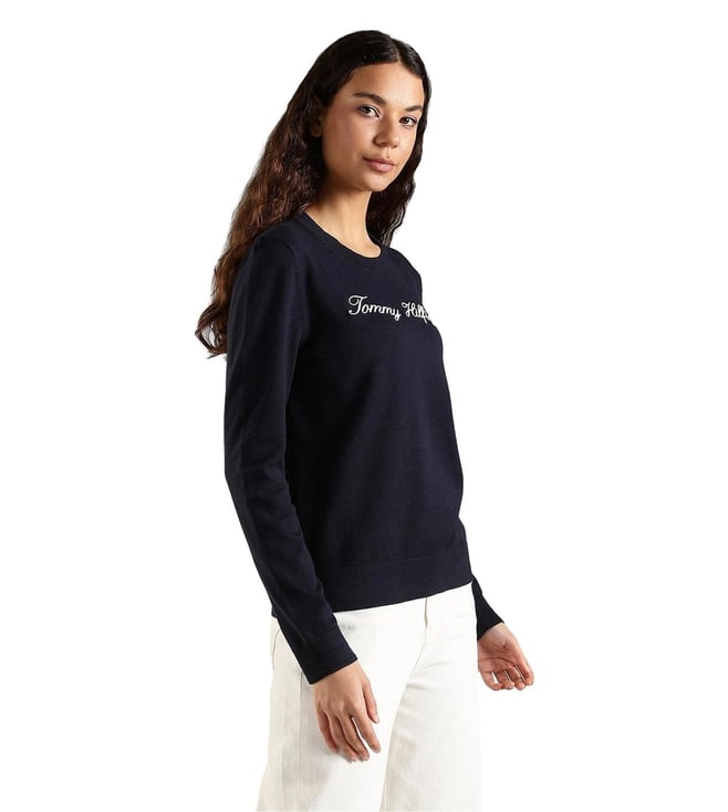 TOMMY HILFIGER Navy Cotton Regular Fit Logo Printed Sweater