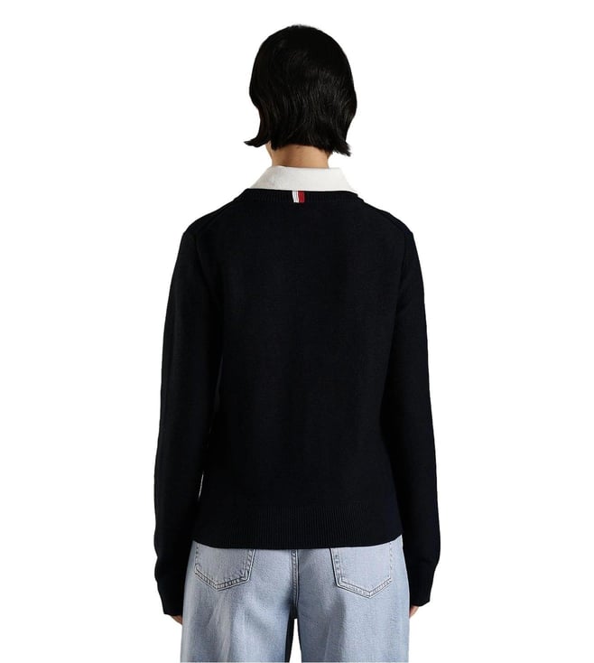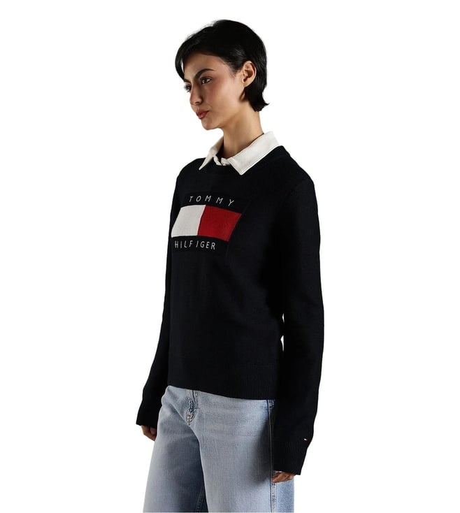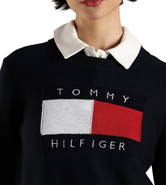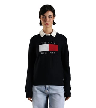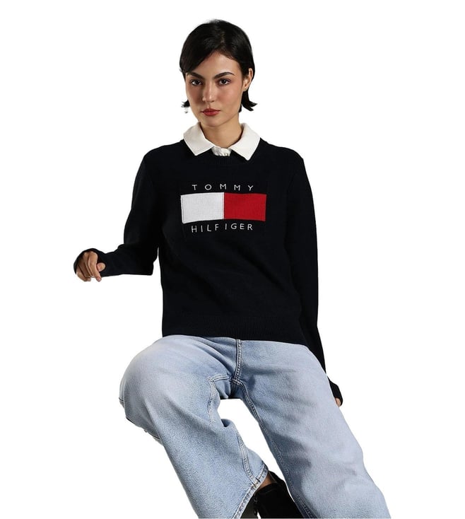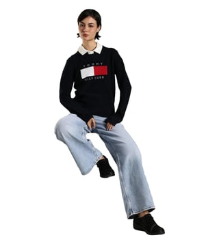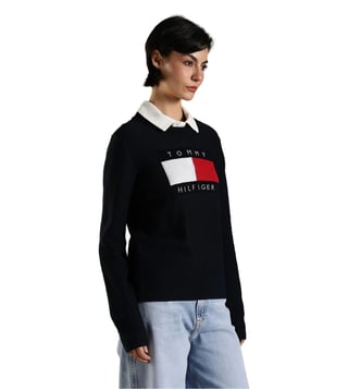 TOMMY HILFIGER Navy Cotton Regular Fit Logo Printed Sweater