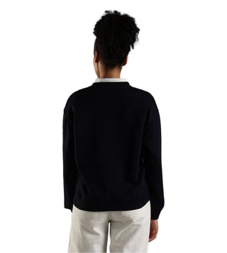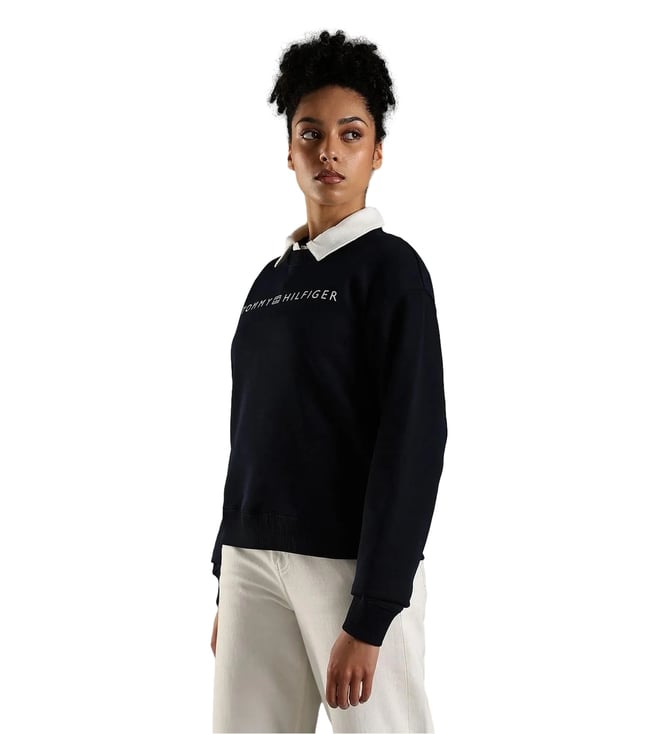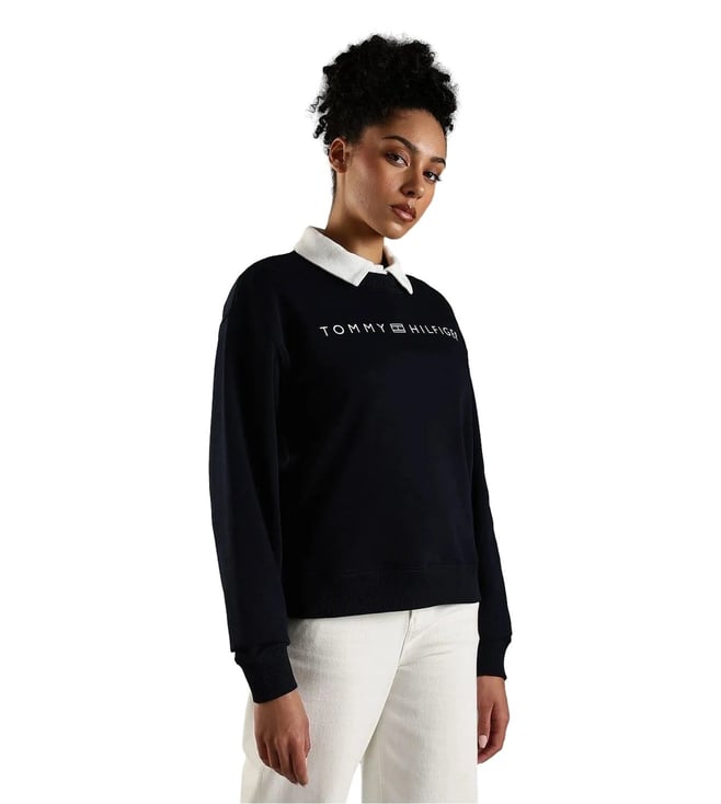 Navy Cotton Regular Fit Logo Printed Sweatshirt