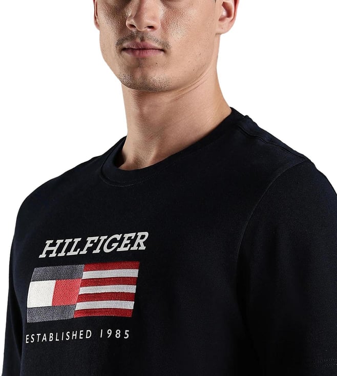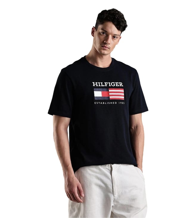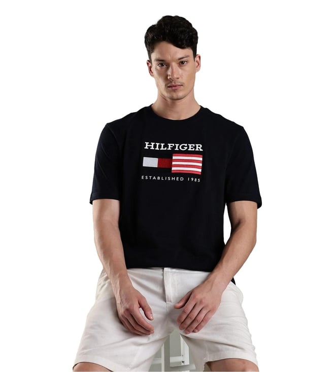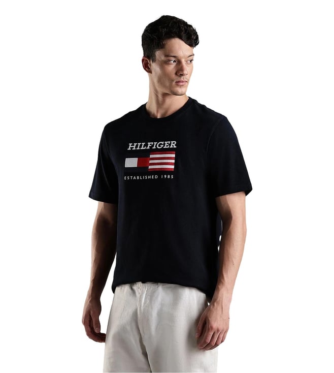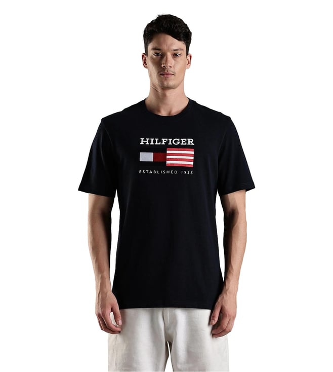 TOMMY HILFIGER Navy Cotton Regular Fit Logo Printed T-Shirt
