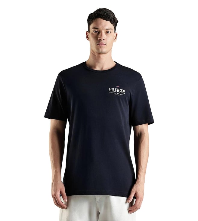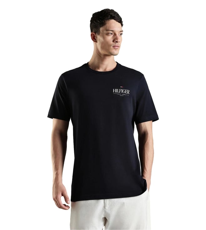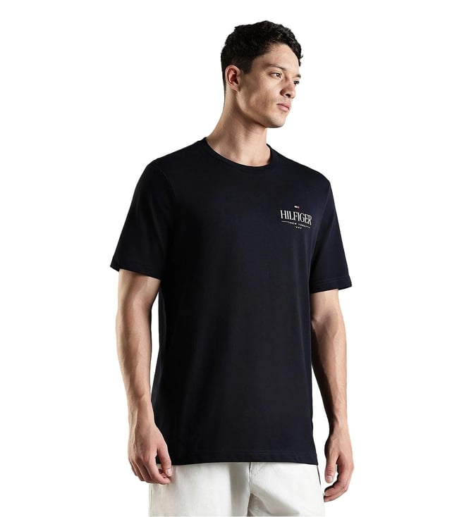 TOMMY HILFIGER Navy Cotton Regular Fit Logo Printed T-Shirt