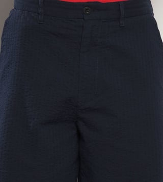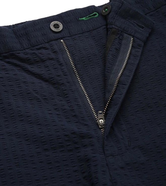 With a minimalistic appeal, this pair of navy regular fit shorts from TOMMY HILFIGER is a perfect melding of style and comfort. Tailored to sartorial perfection from premium quality fabric, it assures a soft and soothing touch against the skin.