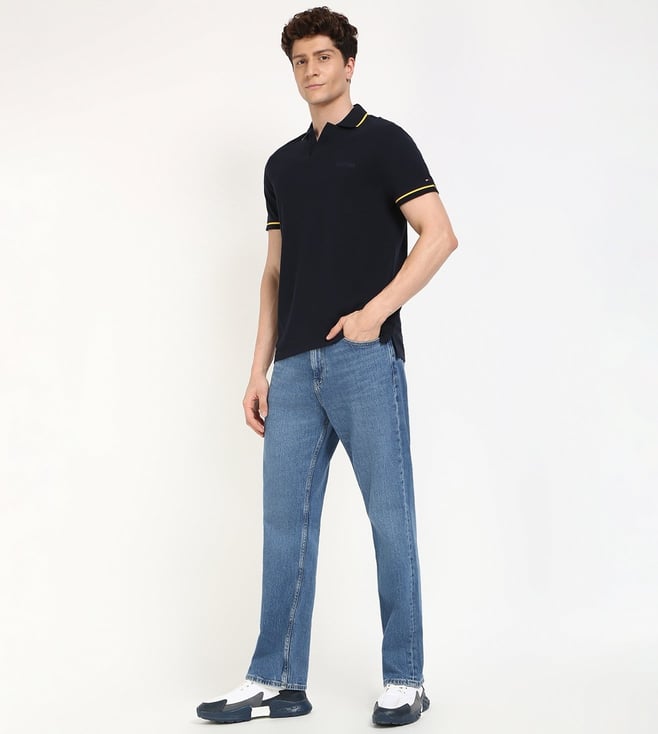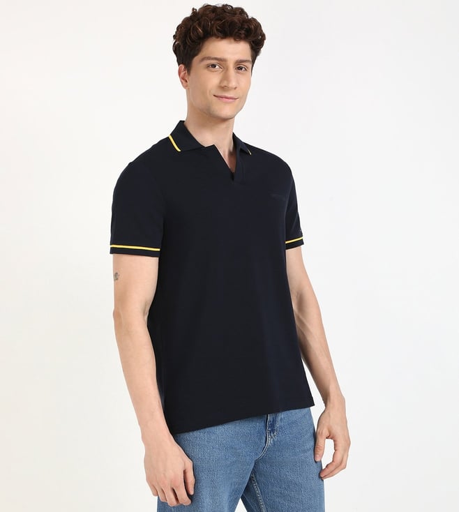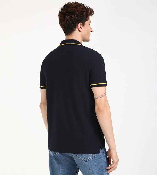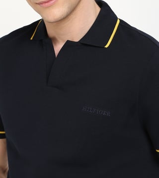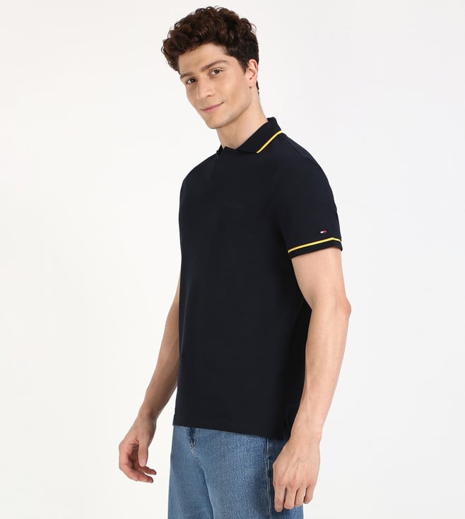 TOMMY HILFIGER Navy Cotton Regular Fit Solid Polo T-Shirt