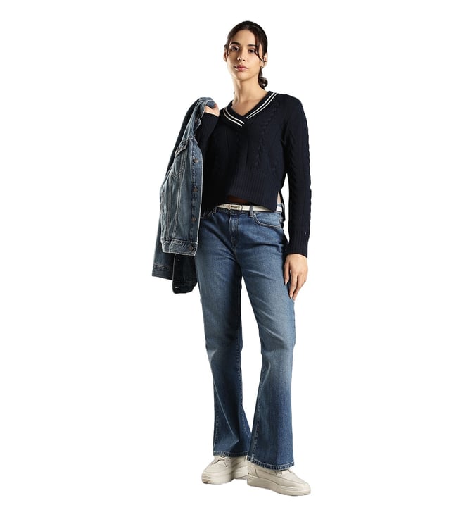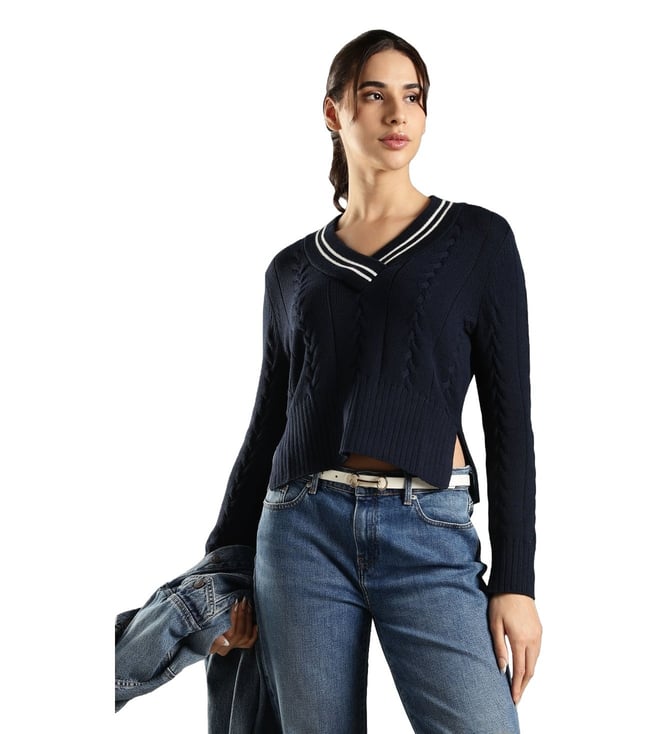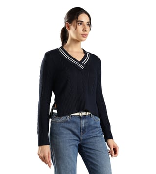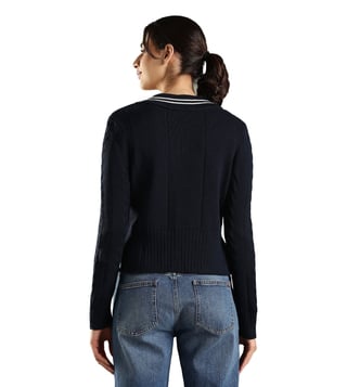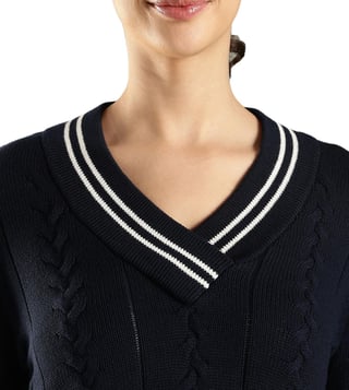 TOMMY HILFIGER Navy Cotton Regular Fit Textured Sweater