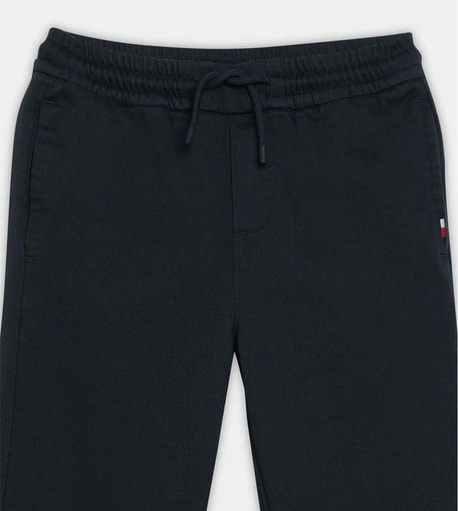 Walk in style by wearing this pair of navy regular fit trackpants from TOMMY HILFIGER. Tailored to sartorial perfection from premium quality fabric, it assures a soft and soothing touch against the skin.