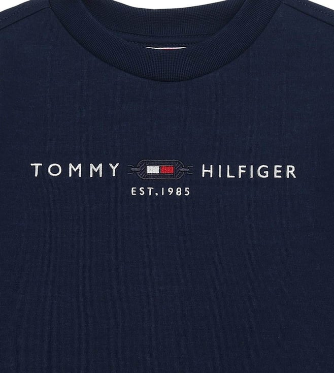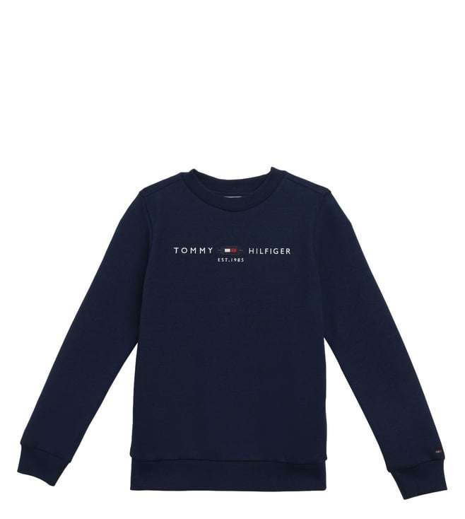 TOMMY HILFIGER Navy Cotton Relaxed Fit Logo Printed Sweater
