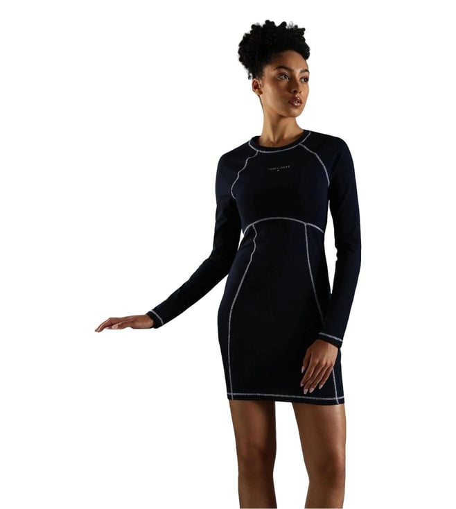 Strike a style statement by wearing this dress from Tommy Hilfiger. The solid pattern exudes sophistication, making it an ideal choice for elevated occasions. Whether you're sipping mimosas with friends or attending a gallery opening, this dress will keep you looking effortlessly stylish.