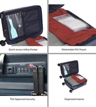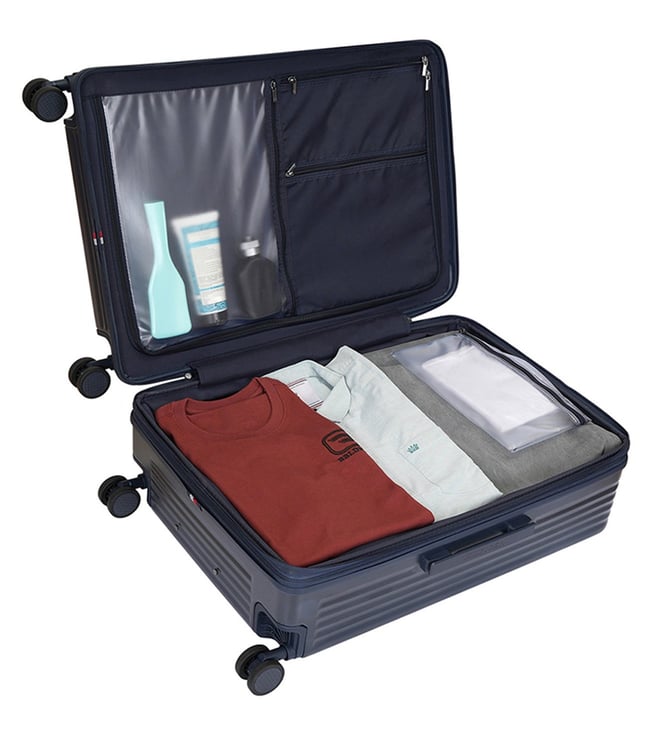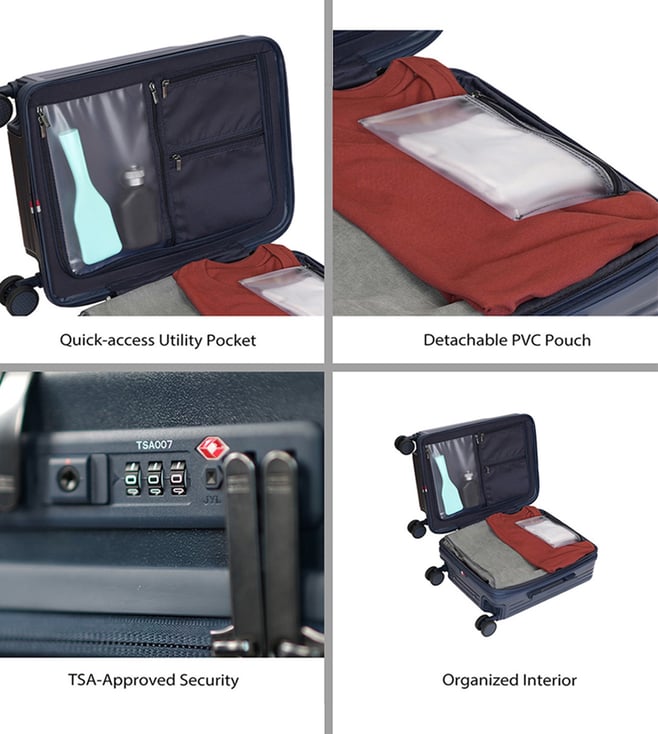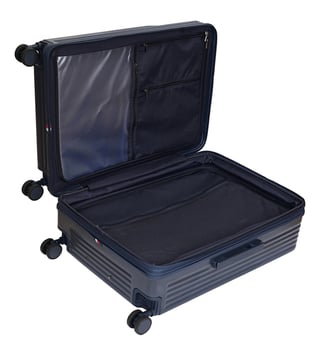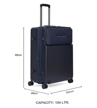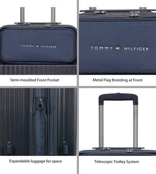 The Tommy Hilfiger hard case trolley combines sleek design with practical features like a semi-moulded front pocket, metal flag branding, and 360-degree rotating wheels, ensuring you move effortlessly in style. Designed for the modern traveler, it includes an in-cabin laptop compartment, quick-access utility pockets, and TSA-approved dual locks, keeping your essentials organized and secure on the go. With expandable storage and a fully organized interior featuring a detachable PVC pouch, this trolley adapts to your needs, making it perfect for business trips, weekend escapes.