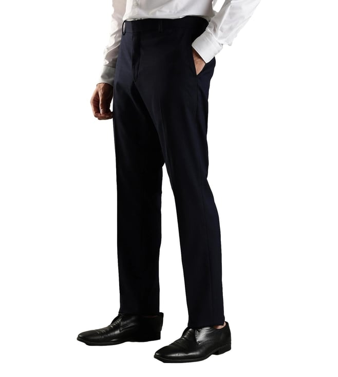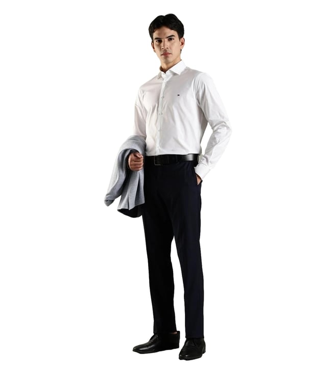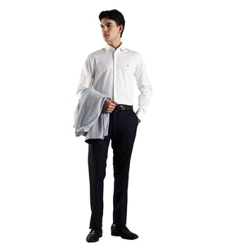 Step into the office with confidence in trousers from Tommy Hilfiger. These regular-fit trousers blend comfort and style for formal work settings. Their versatile tone makes them a practical choice for pairing with different shirts, ensuring a sharp, professional appearance throughout the day.