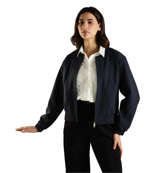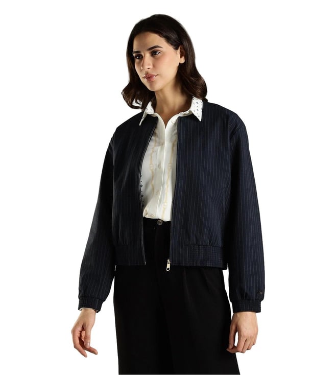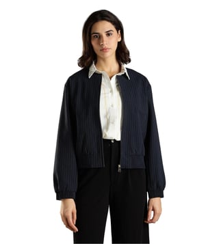 Step into style with jacket from Tommy Hilfiger perfect for casual outings. Bold stripes create a slimming effect while its versatile design lets you layer easily. Pair over t-shirts or dresses for chic style that complements skirts or jeans effortlessly.