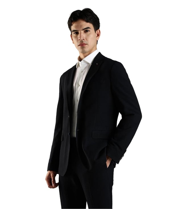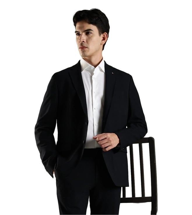 Command attention in the boardroom with this blazer from Tommy Hilfiger. Tailored for the discerning gentleman, this single-breasted blazer adds depth to your formal workwear. It pairs effortlessly with matching trousers for a complete suit look, providing sophistication and confidence in professional settings.