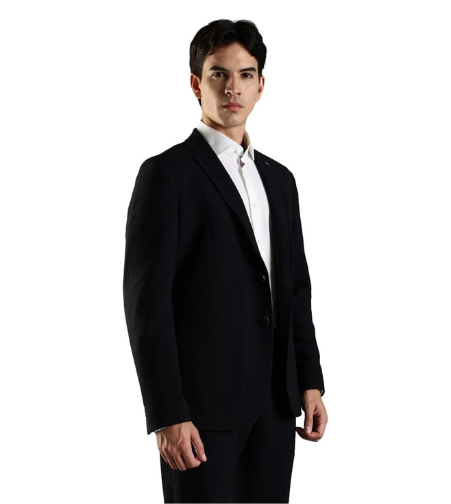 Navy Regular Fit Texture Blazer