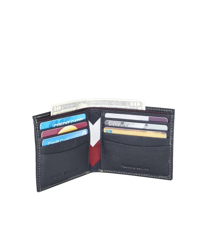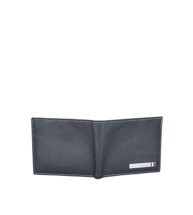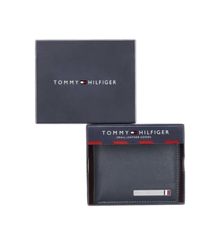 Exclusively designed for fashion-forward men, this bi-fold wallet from the Vihaan collection by Tommy Hilfiger is sure to make a style statement. This navy wallet, exuding a solid pattern, can easily fit in all your essential cash and cards in its 2 compartments and multiple slots. Crafted from high-quality leather, it is durable and incredibly fine in quality.