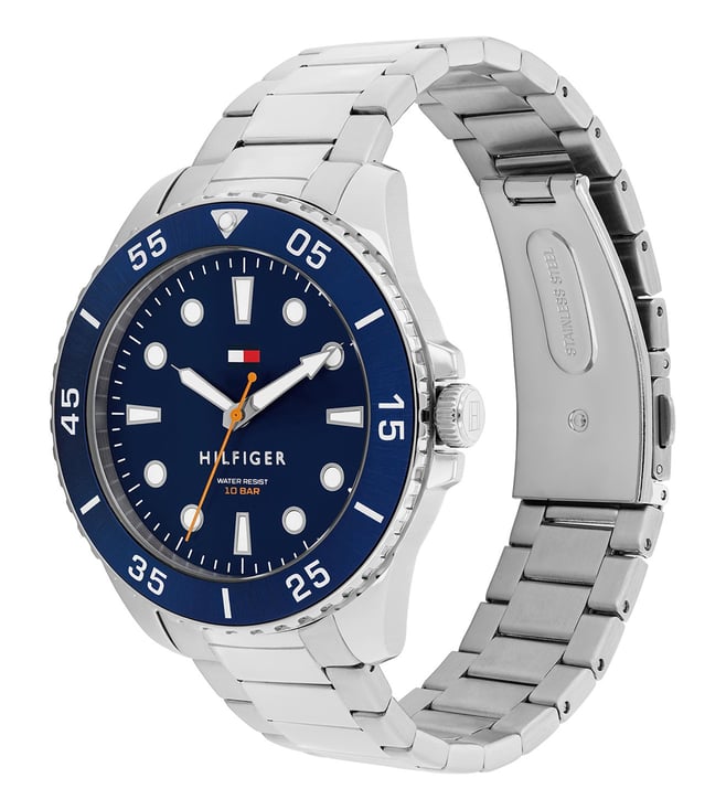 Experience precision and style with the Tommy Hilfiger Oceanic Collection, featuring men's watches powered by reliable Quartz Movement. These timepieces combine sleek, maritime-inspired design with modern functionality, delivering accurate timekeeping and a refined, adventurous look. Perfect for everyday wear or special occasions, each watch in the Oceanic Collection captures the fresh, bold spirit of Tommy Hilfiger. Elevate your wristwear with a watch that blends elegance and resilience effortlessly.