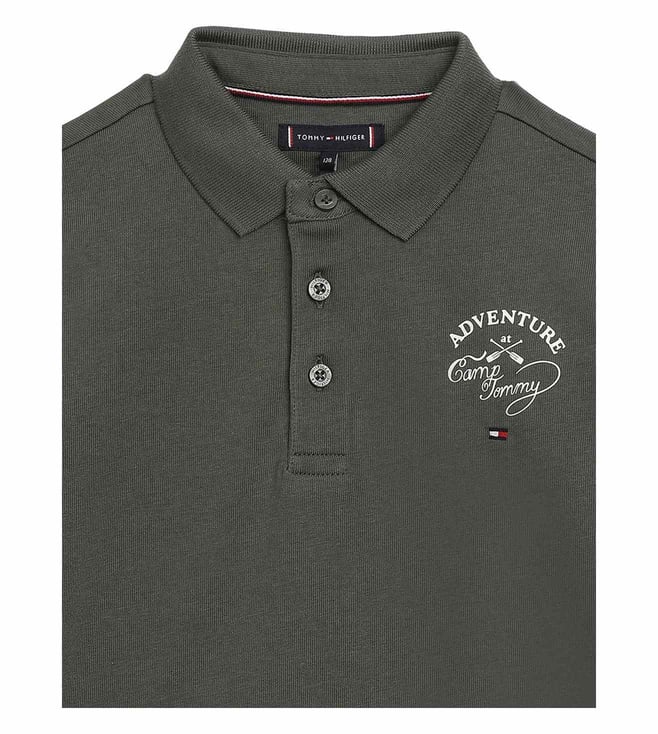 TOMMY HILFIGER Olive Cotton Relaxed Fit Printed Polo T-Shirt