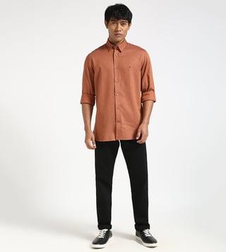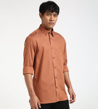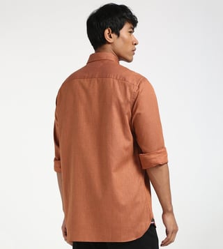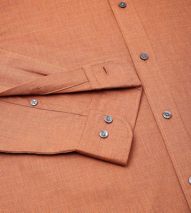 Elevate your wardrobe with this striking slim-fit shirt, designed for the modern man who appreciates both style and comfort. Crafted from premium cotton fabric, it offers a breathable yet refined feel. The vibrant orange hue adds a bold pop of color, while the textured full sleeves introduce a subtle sophistication to your ensemble. Featuring a classic shirt collar, this piece seamlessly blends traditional elements with contemporary flair. Perfect for any occasion, this shirt promises to be a standout addition to your collection.