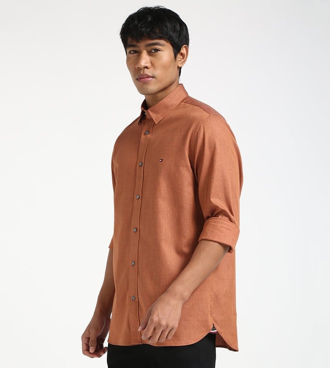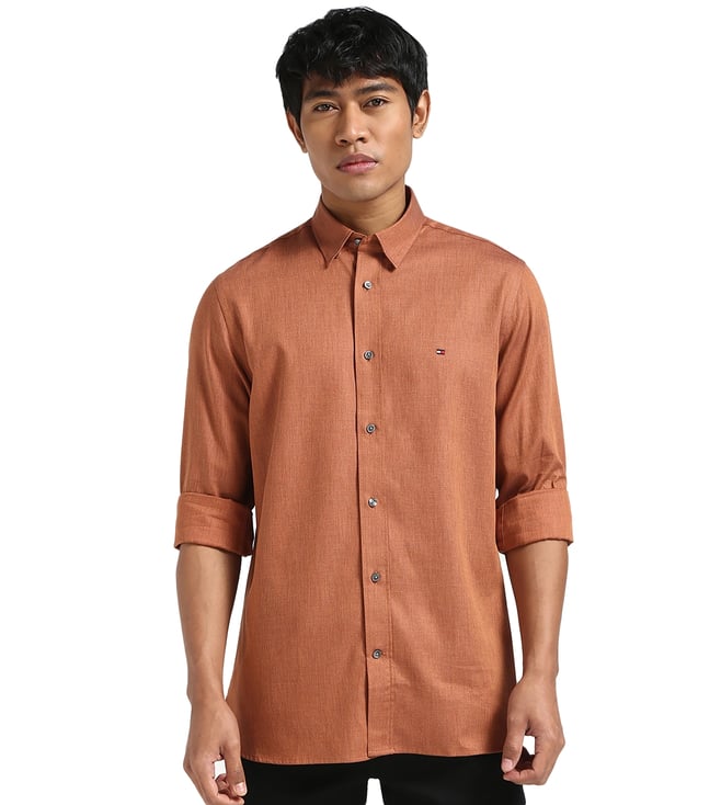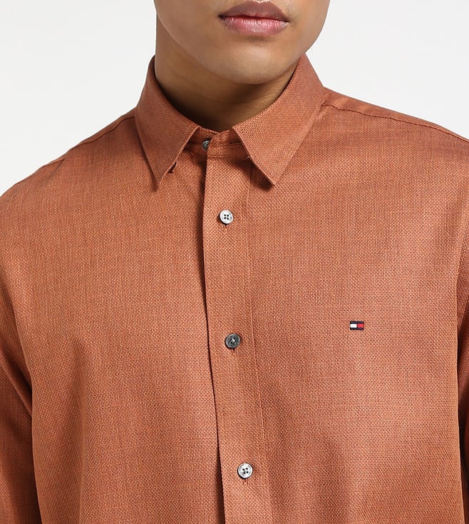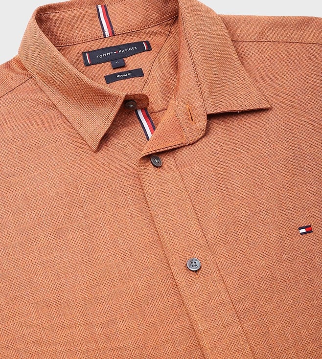 TOMMY HILFIGER Orange Cotton Slim Fit Textured Shirt