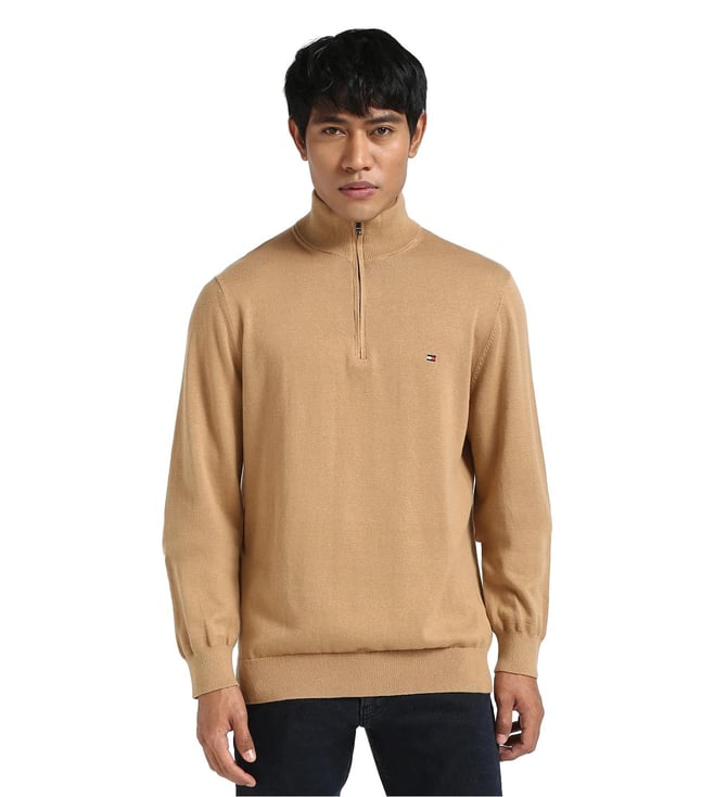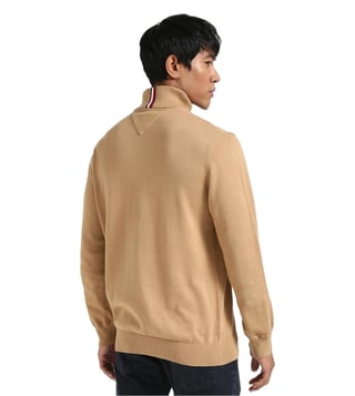 Devise a modish style statement by wearing this pinecone tan high neck regular fit sweater from Tommy Hilfiger. Tailored to sartorial perfection from premium quality fabric, it assures a soft and soothing touch against the skin. Exuding full sleeves, it is sure to fetch you compliments from all.