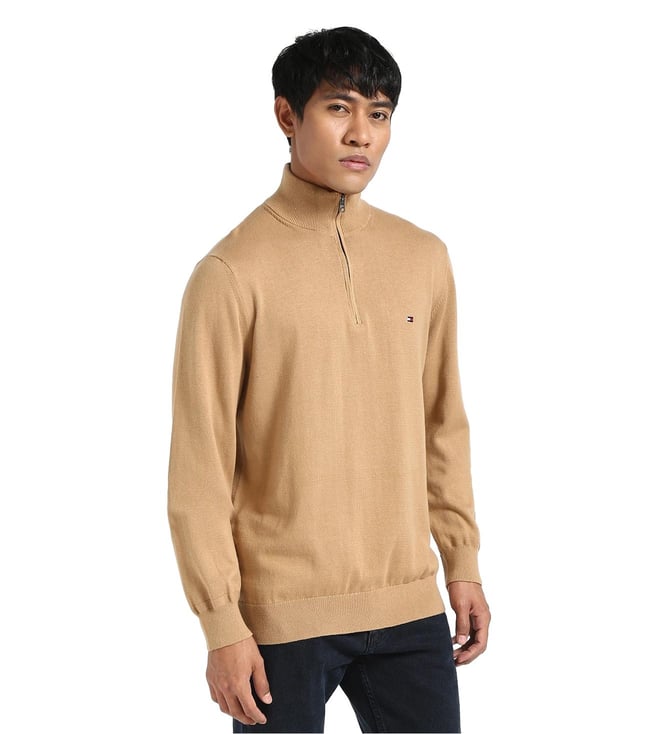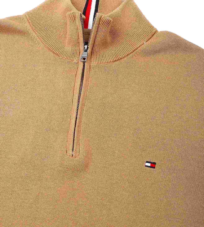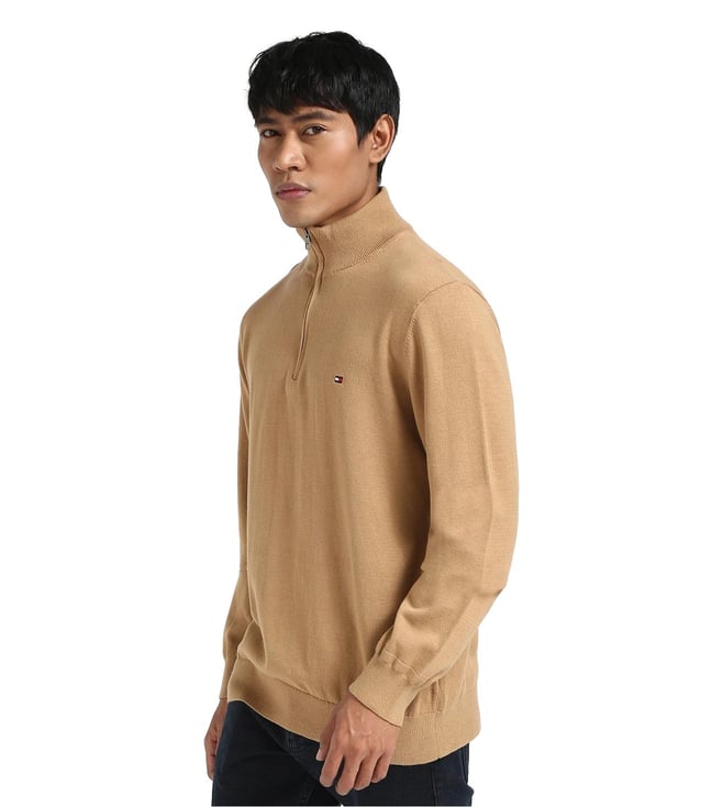 TOMMY HILFIGER Pinecone Tan Cotton Regular Fit Sweater
