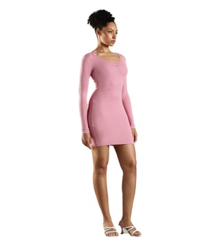 TOMMY HILFIGER Pink Cotton Slim Fit Self Pattern Dress