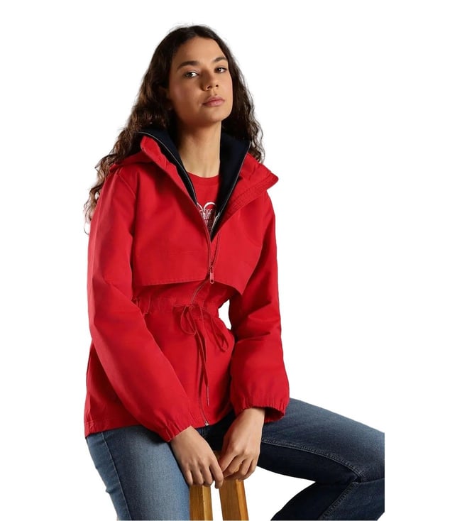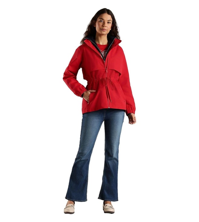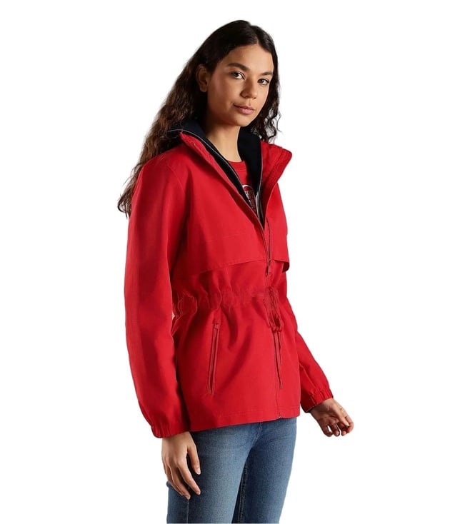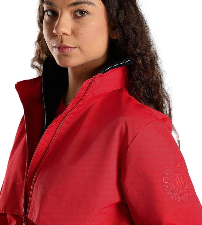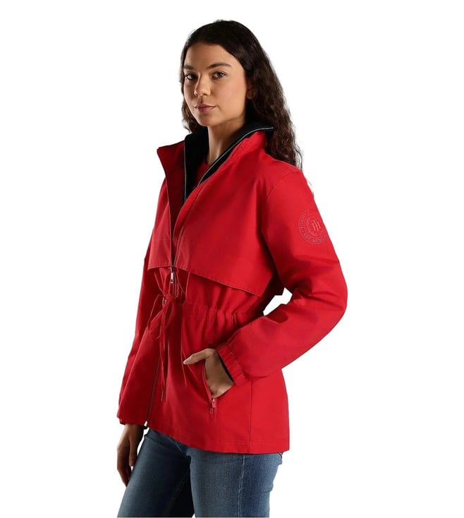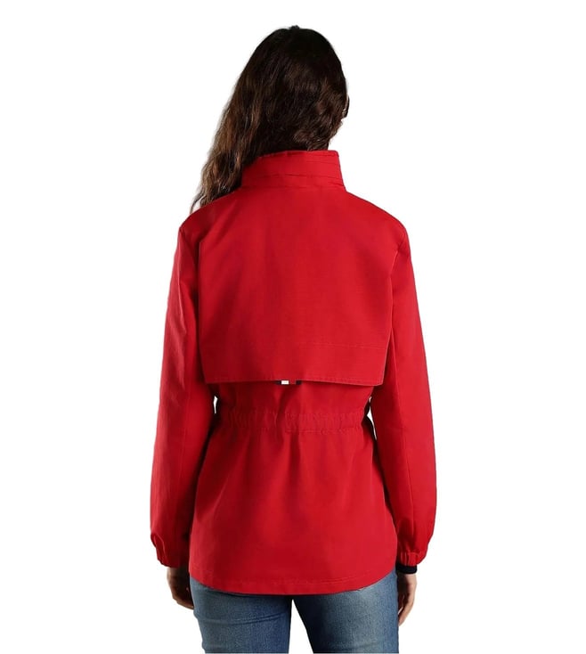 Primary Red Regular Fit Polyamide High-Neck Jacket