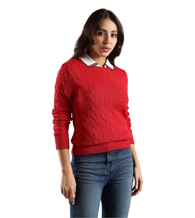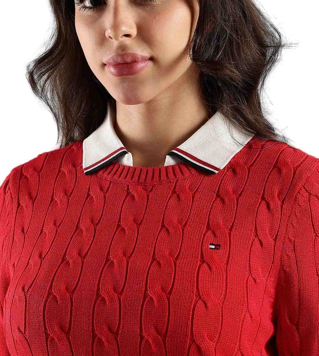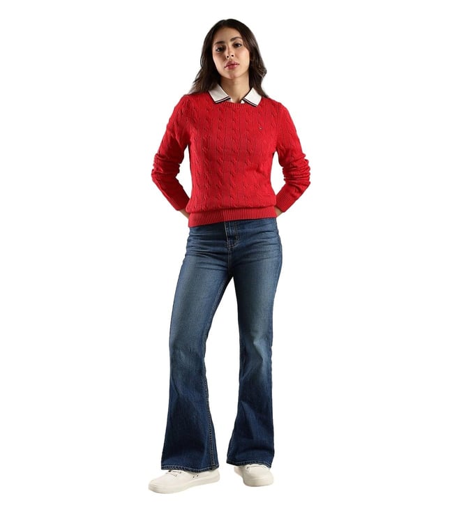 TOMMY HILFIGER Primary Red Slim Fit Cotton Crew Neck Sweater