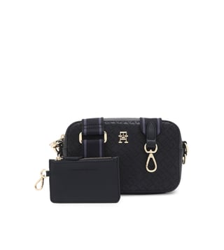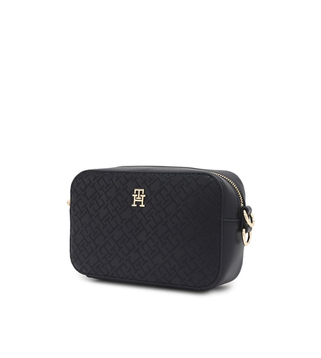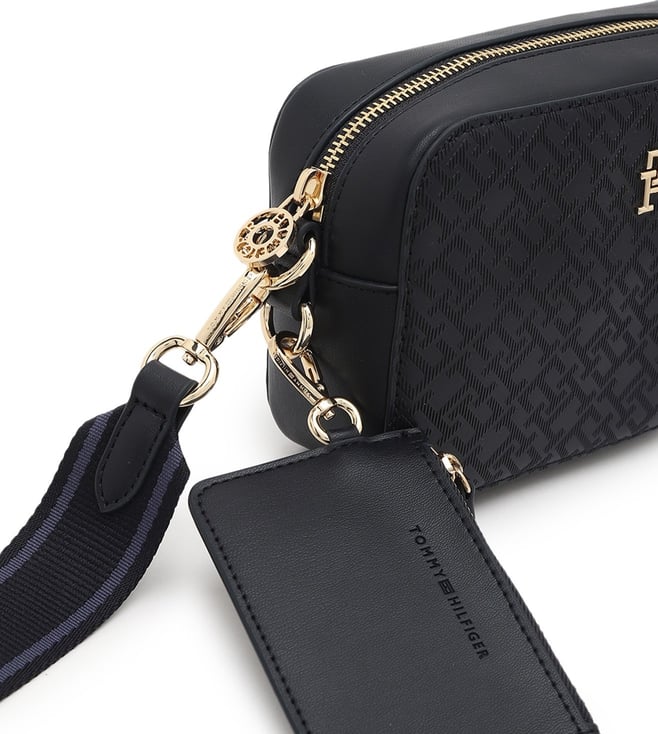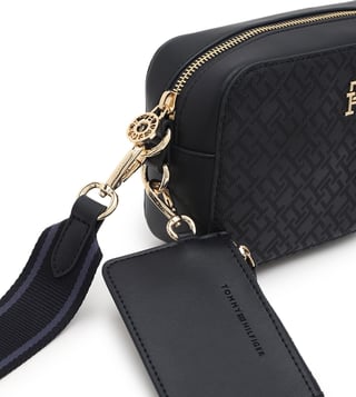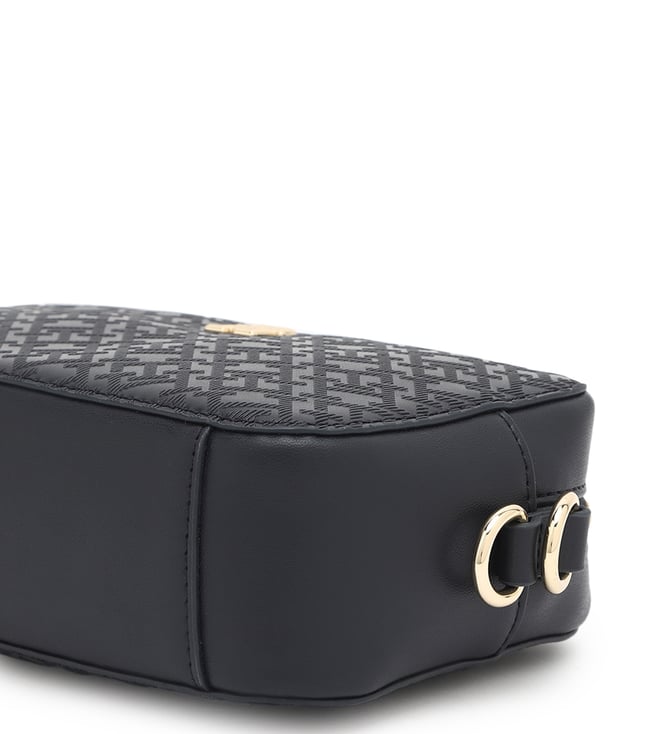 Make a statement with this black logo-patterned sling bag for women. Chic and practical for the fashion-forward. Styling tip: Let the bag be the focal point of a minimalist outfit.
