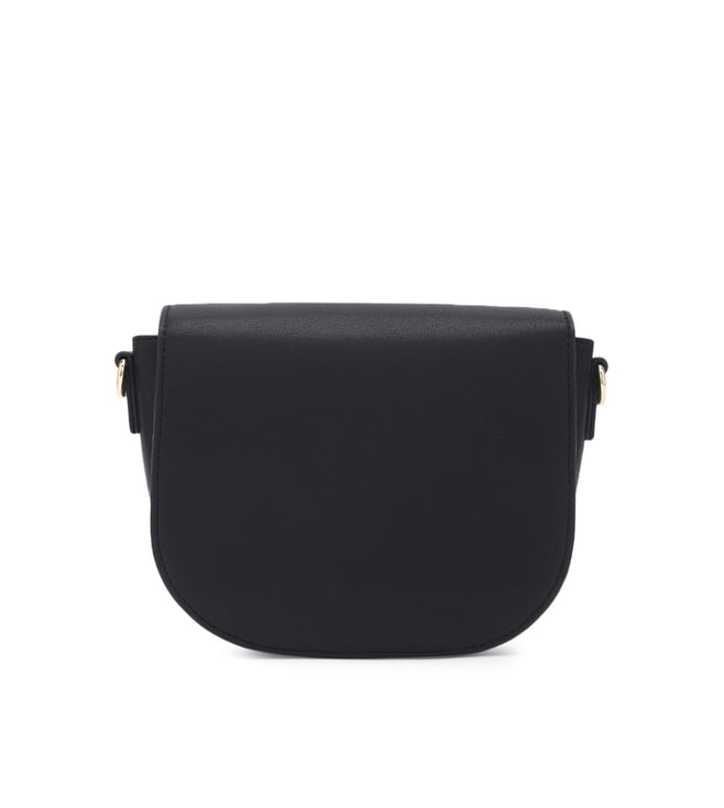 Sleek and timeless, this black solid sling bag is a must-have for the modern woman. Perfect for day-to-night transitions. Styling tip: Accessorize with gold jewelry for a touch of glamour.