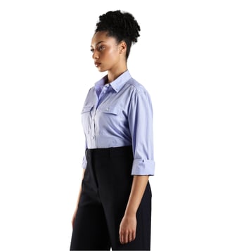 Elevate casual wear with this shirt from Tommy Hilfiger featuring a solid design. Perfect for versatile outfits, it pairs with skirts or jeans for chic and easy styling, making it a wardrobe essential.